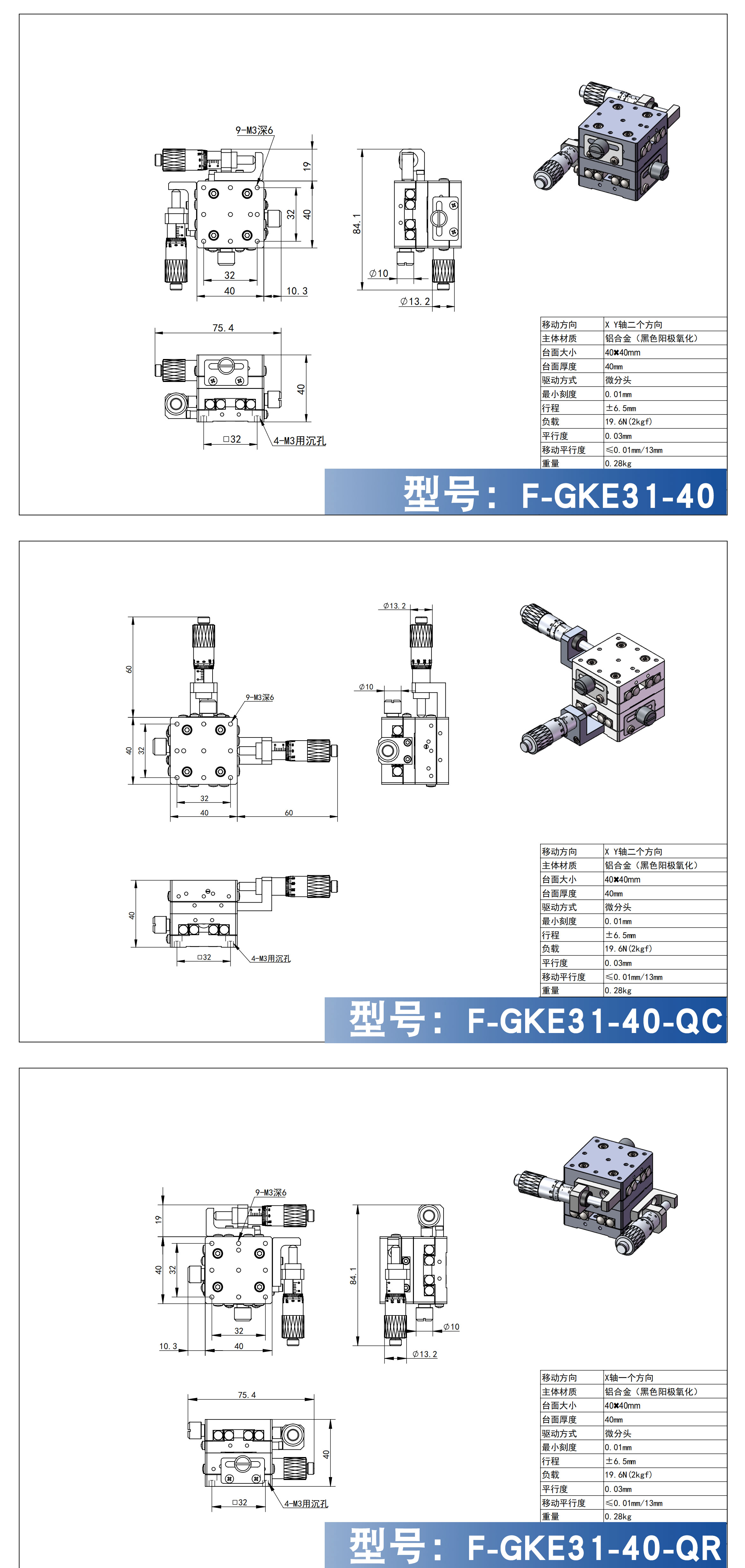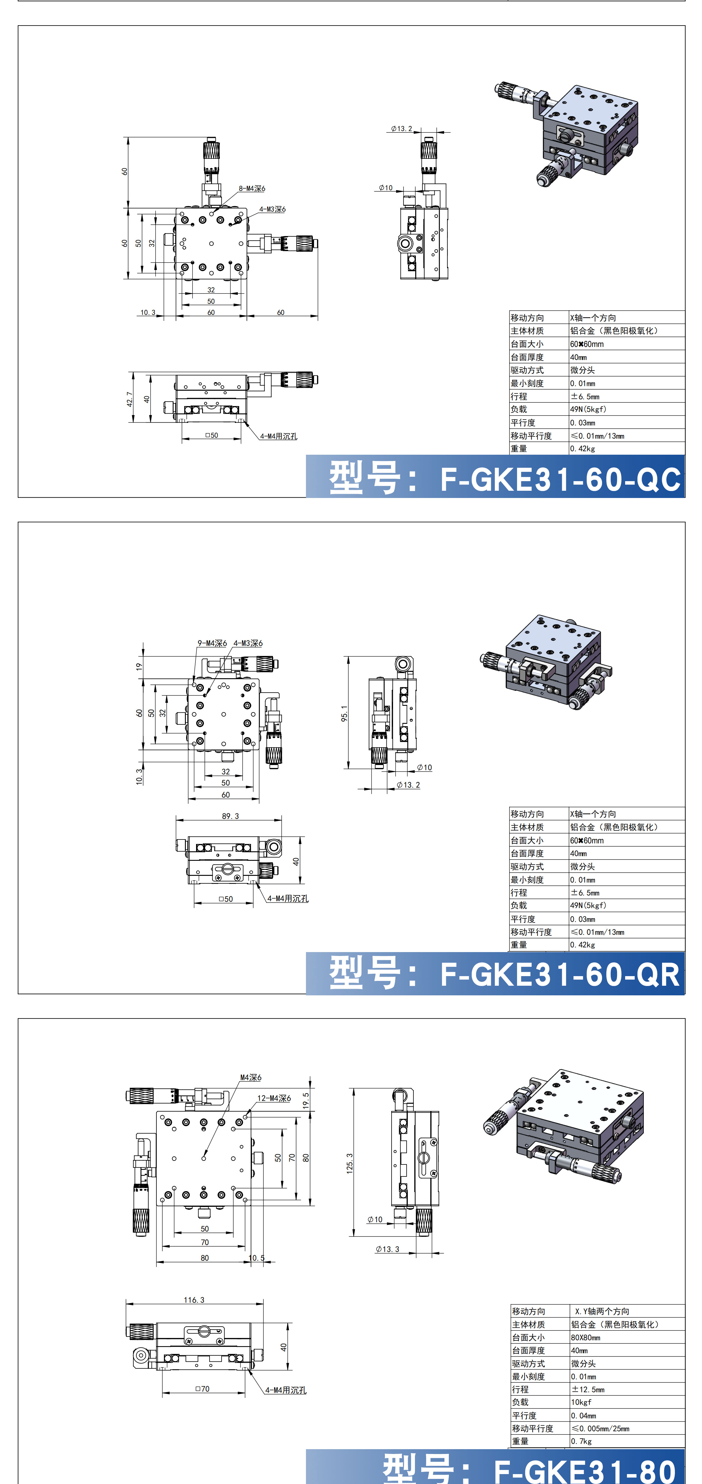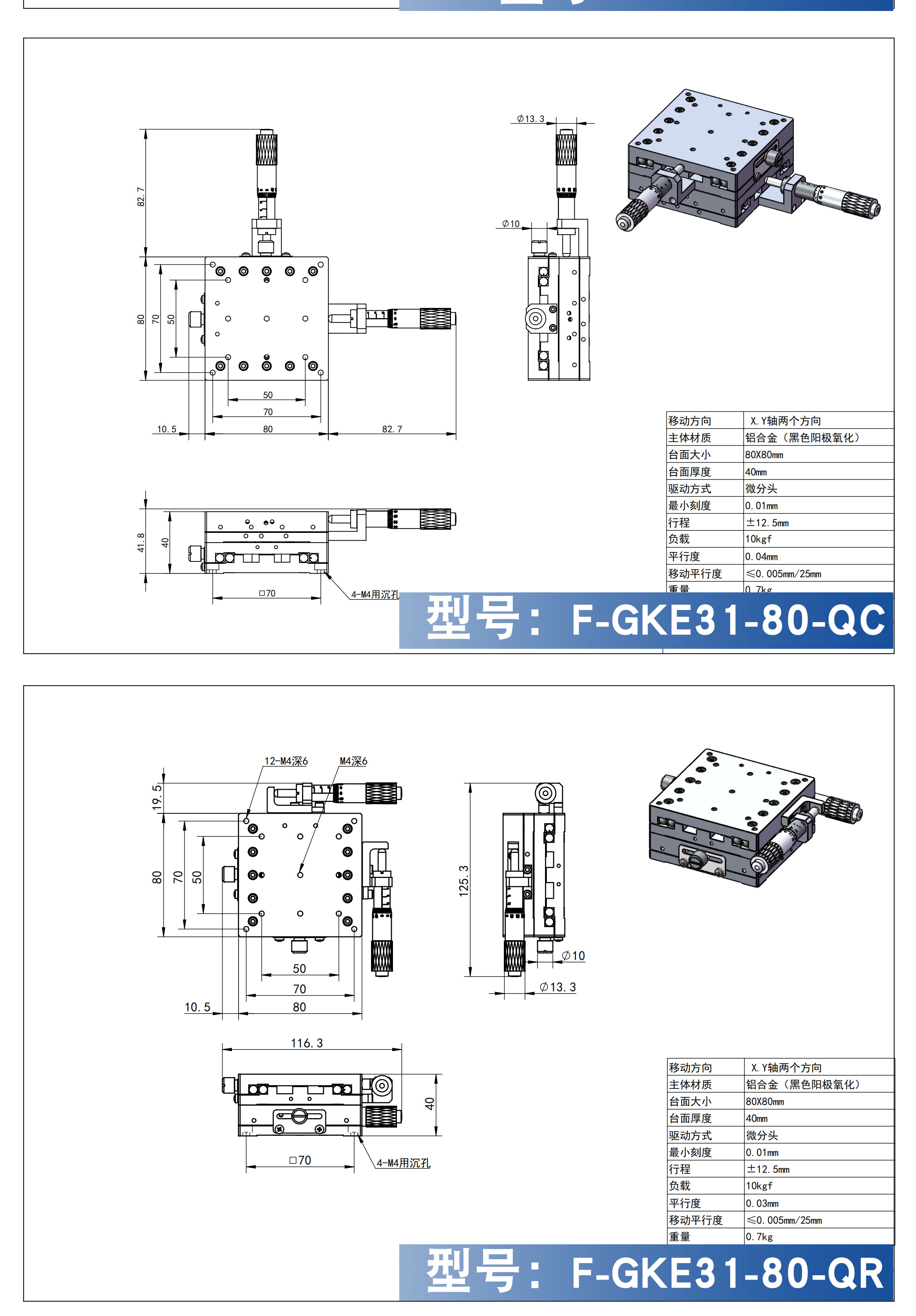 手动XY轴交叉滚子导轨型位移滑台F-GKE31是一款中精度滑台,它可使用千分尺旋钮以0.01mm为单位进行调整。