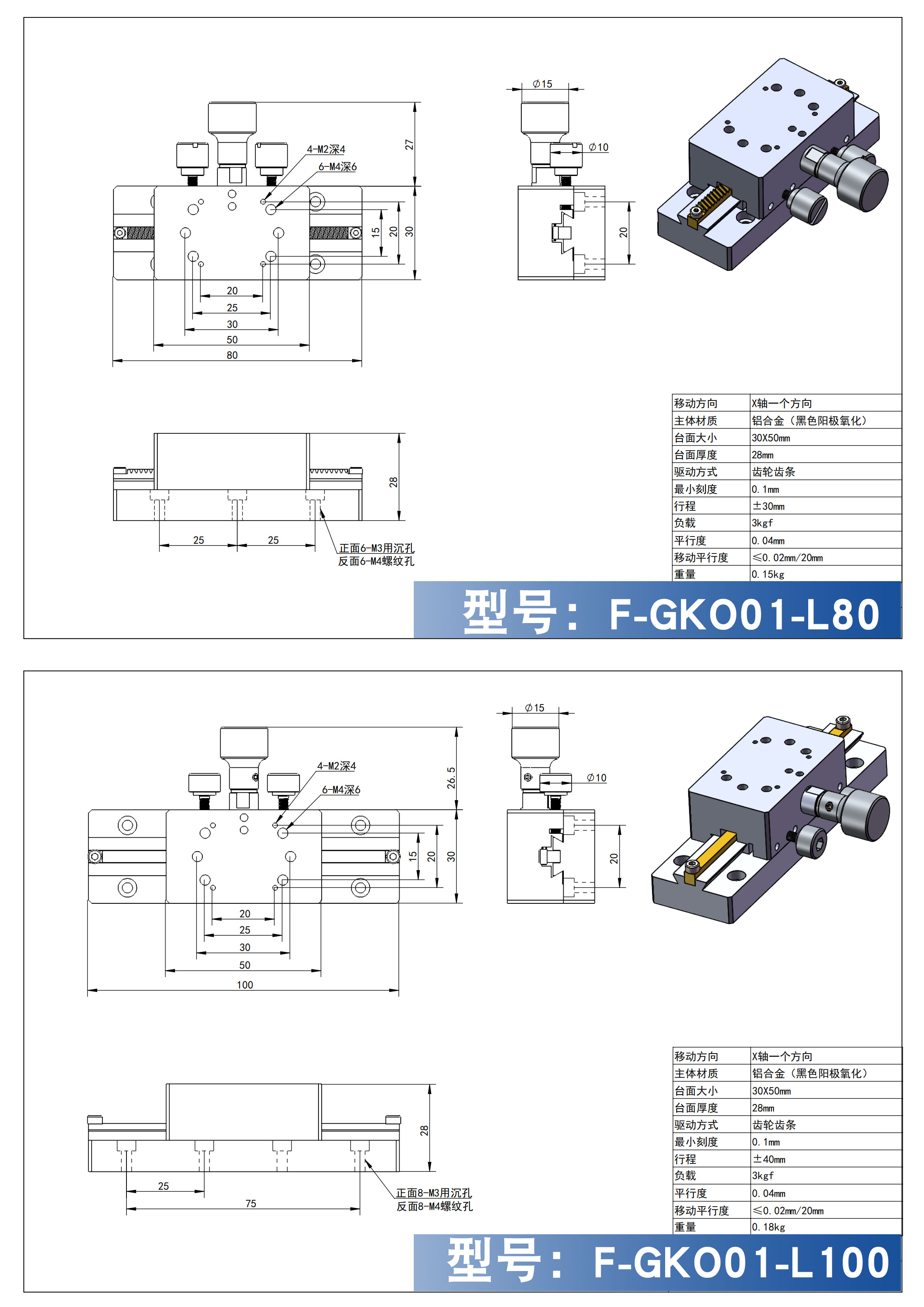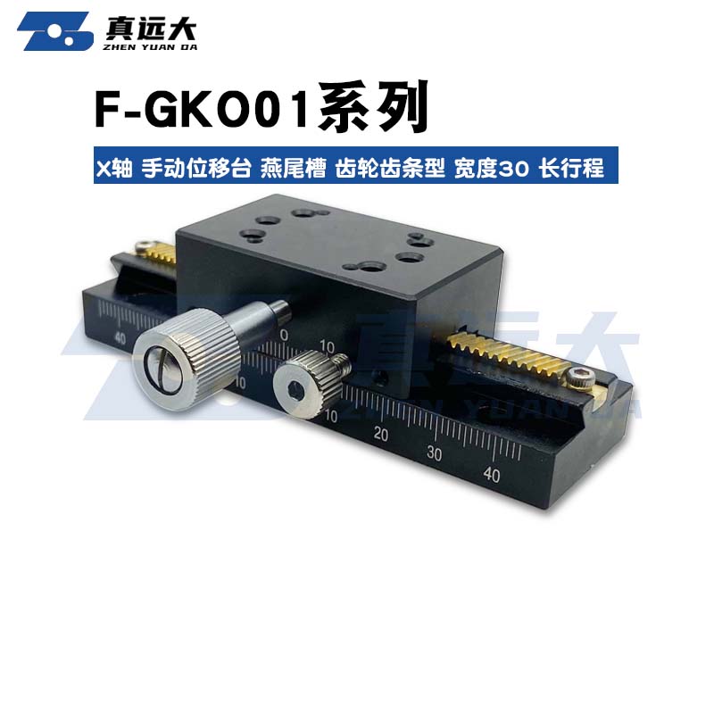X轴 手动位移台 燕尾槽式 齿轮齿条型 宽度30 长行程