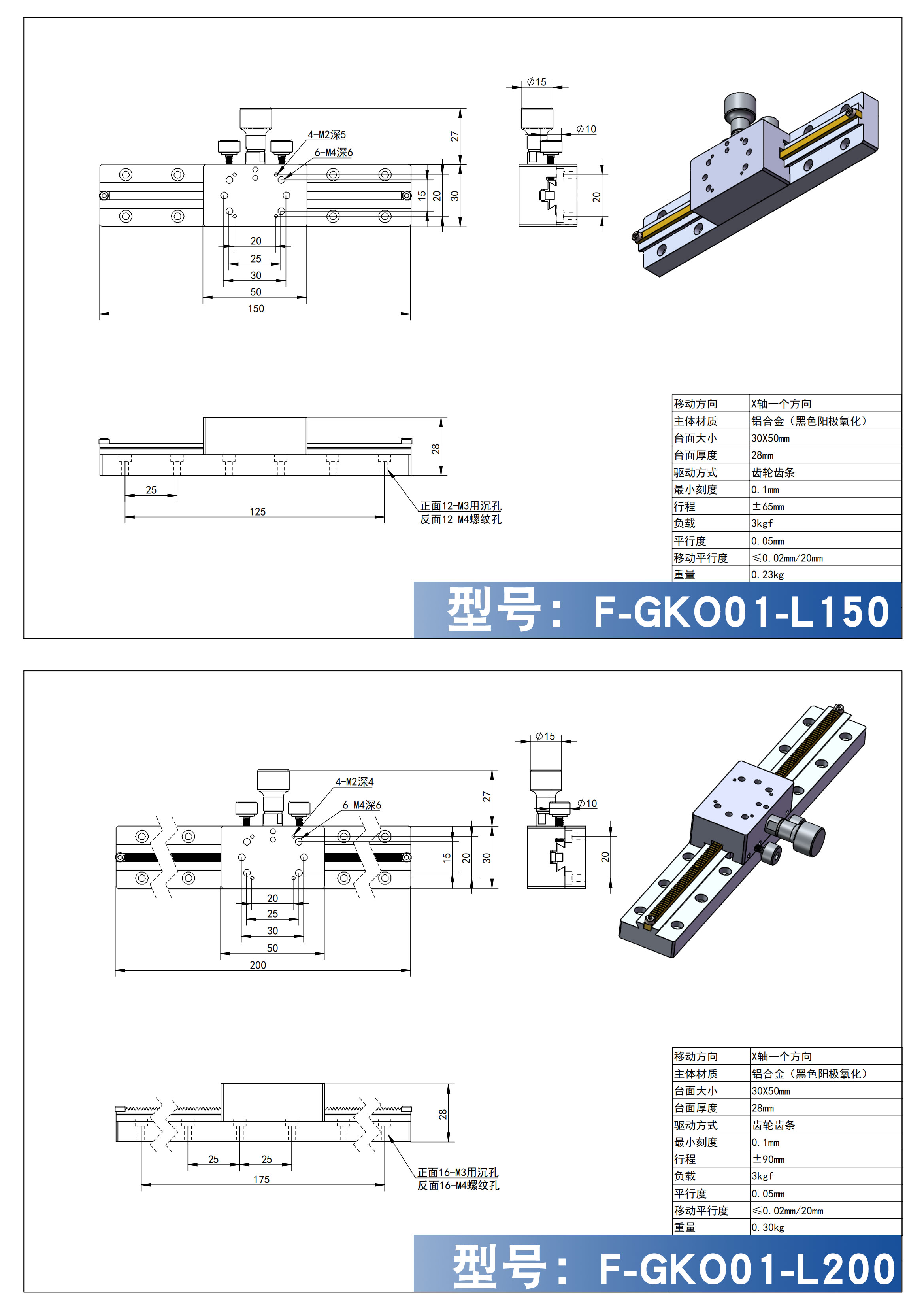 真远大F-GKO01系列燕尾槽型手动X轴滑台由于采用了齿轮齿条式的进给机构,使其能够快速进给。