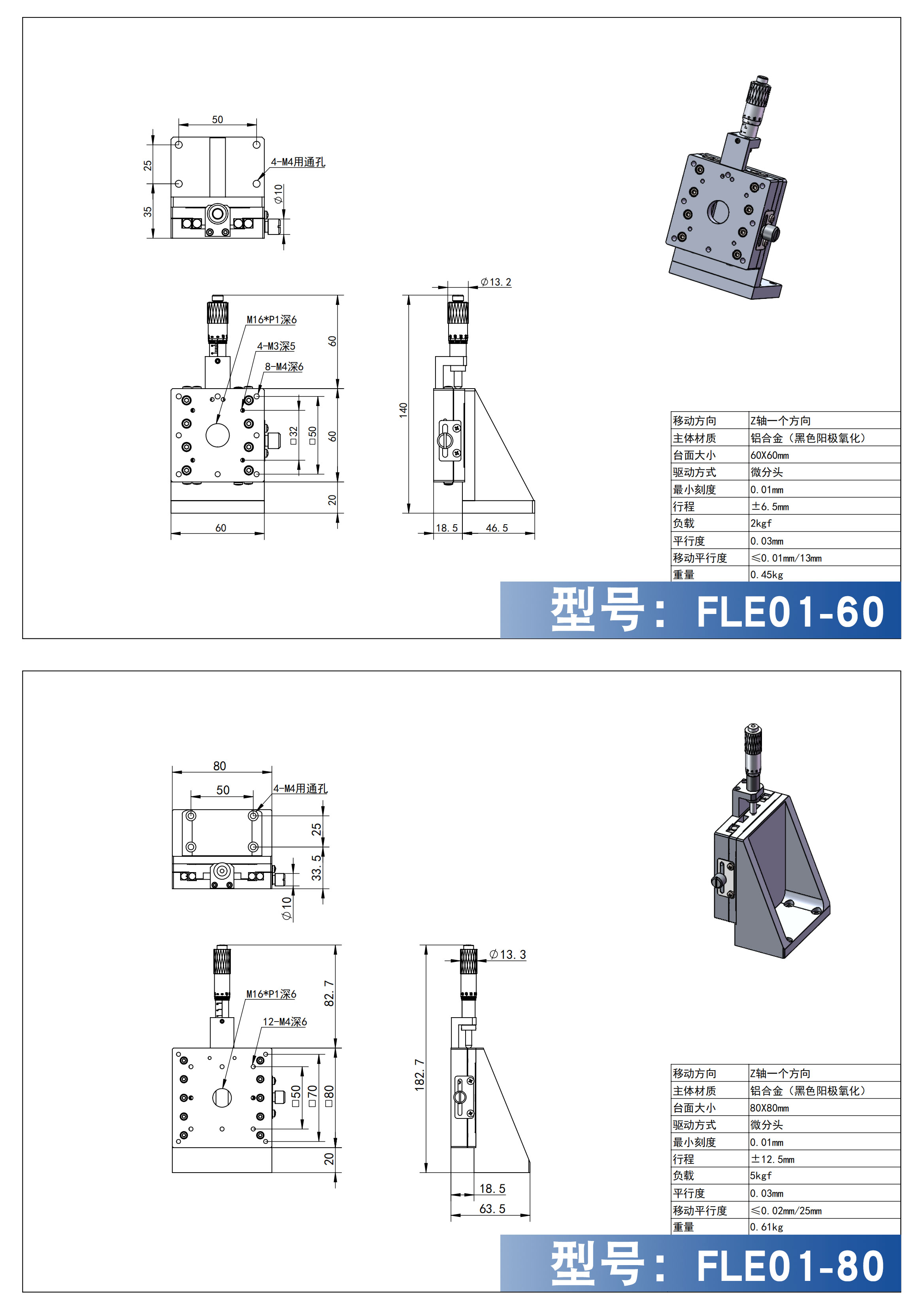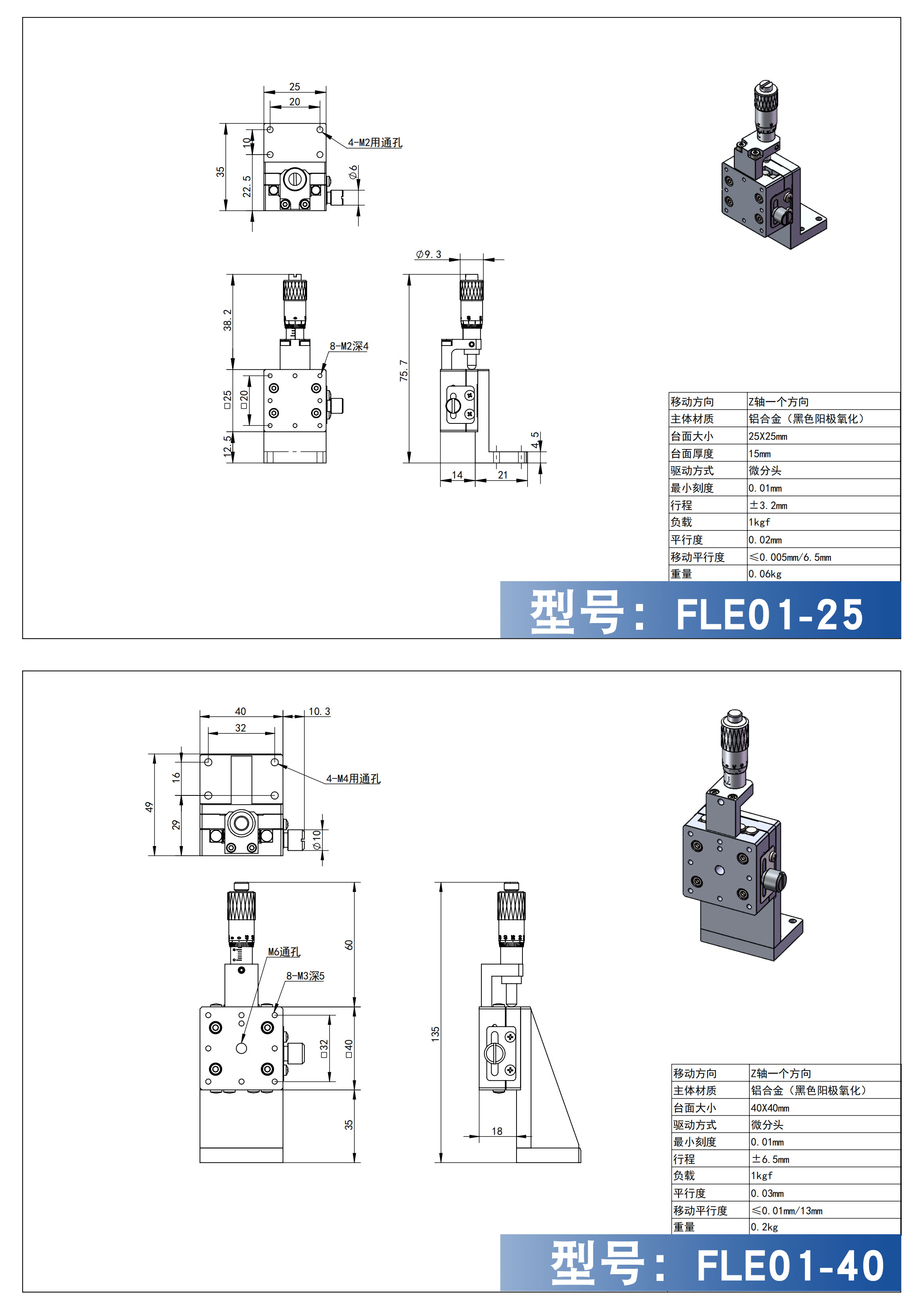 真远大FLE01系列交叉滚子导轨型手动Z轴滑台适合于精度要求更高的光学领域。