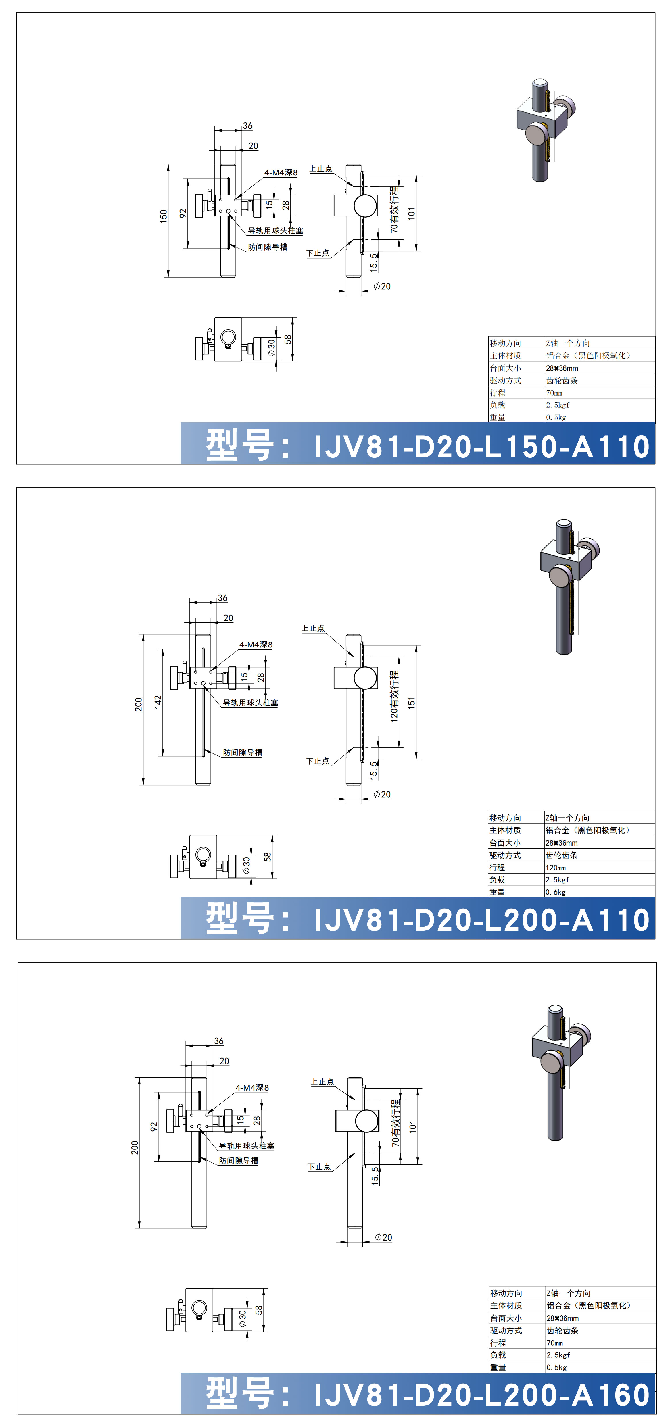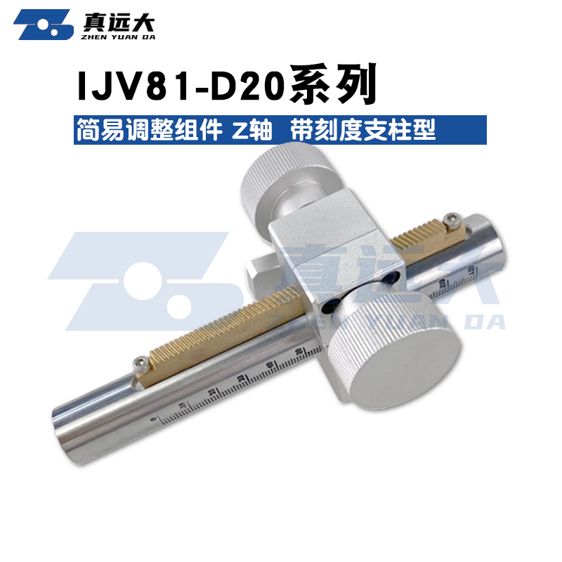 真远大IJV81-D20系列简易调整组件是一款Z轴带刻度的支柱型组件,可配合导向轴支座使用,用于Z轴方向的简易调整。