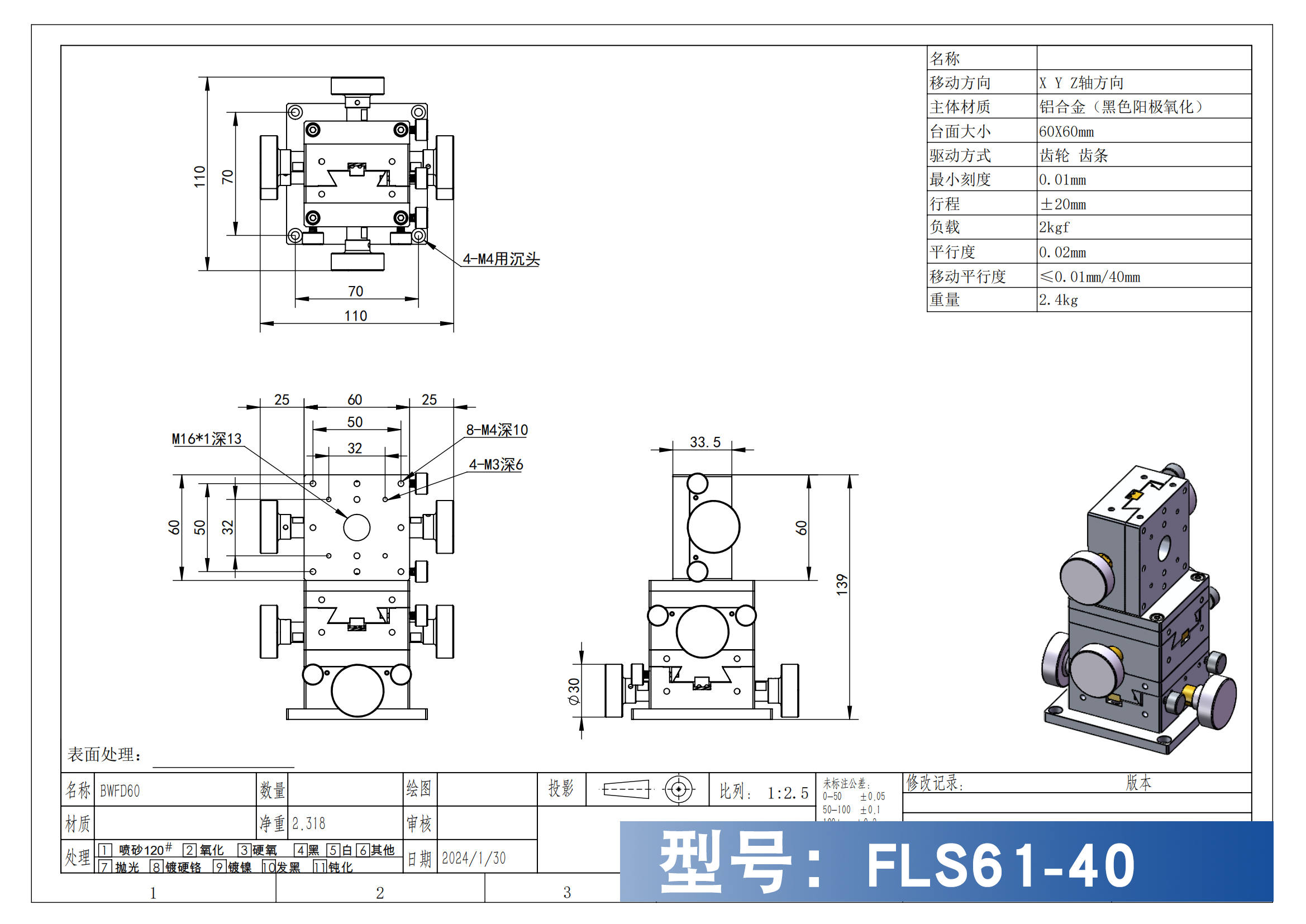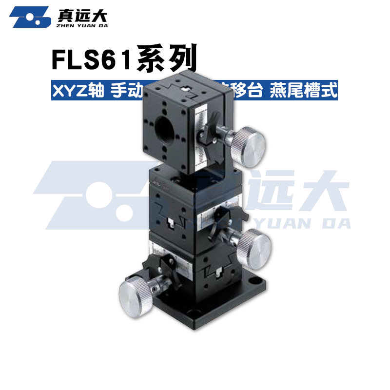 真远大FLS61系列燕尾槽型手动XYZ轴滑台是一款高精度滑台,。由于其采用了齿条齿轮进给机构,旋转1圈的移动量为18mm,最适合快速进给的场合。