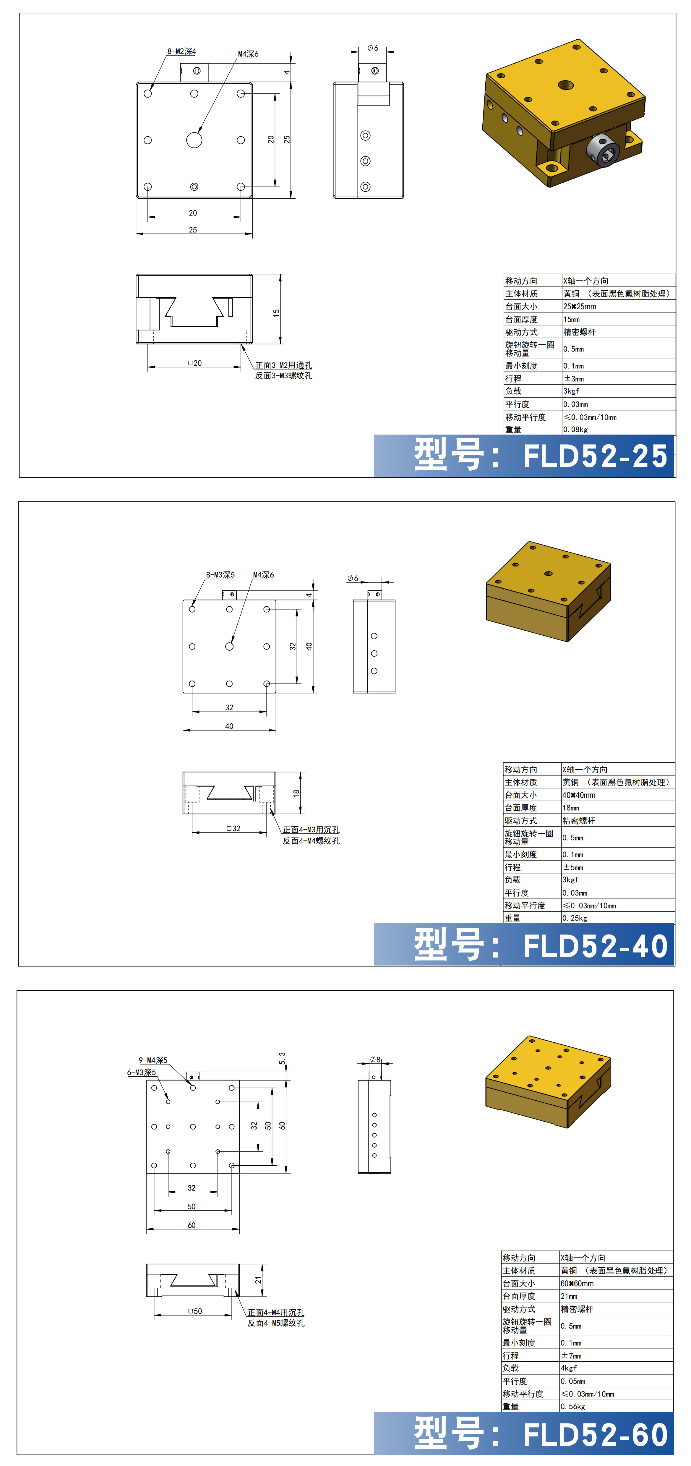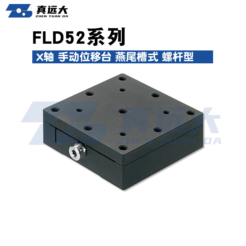 真远大FLD52系列燕尾槽型手动X轴滑台是一款用内六角扳手调整的高精度滑台,无需使用旋钮,节省空间。另外,无内六角扳手即无法进行调整,故可防止误操作。