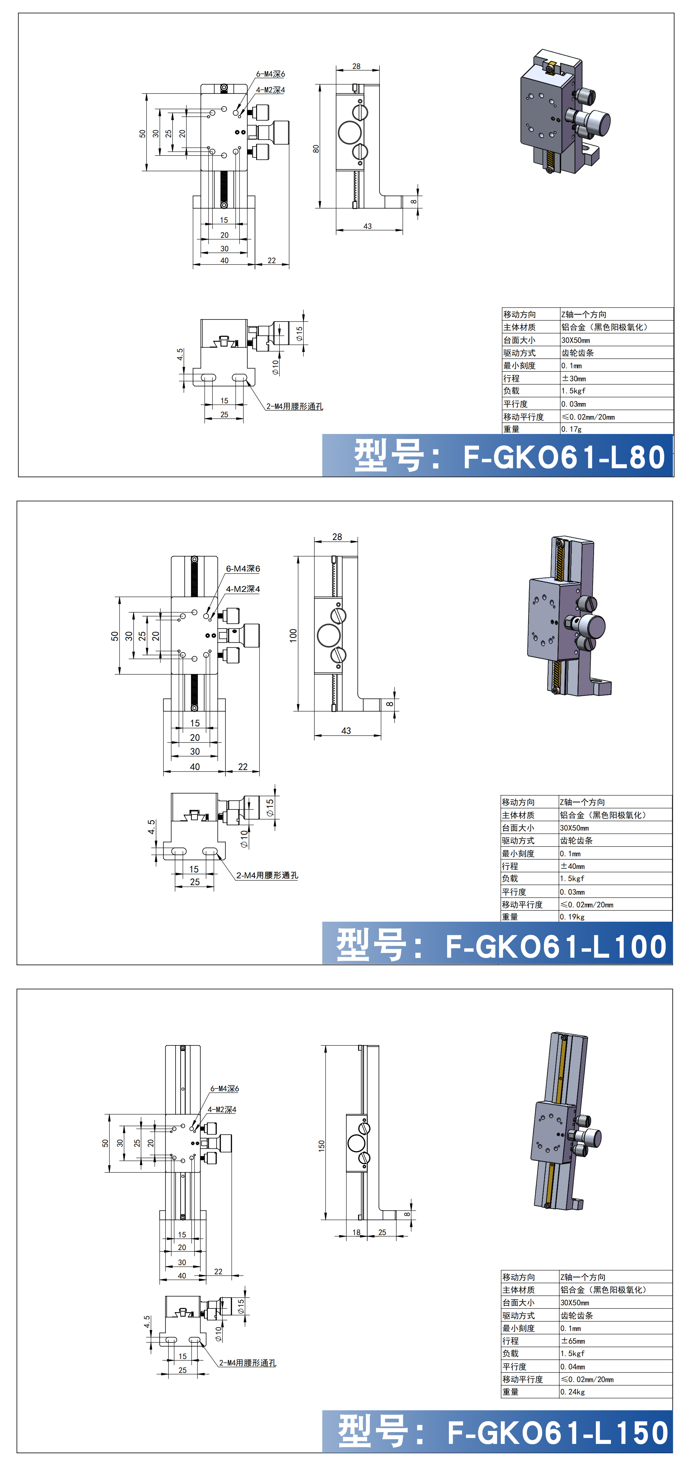 Z轴 手动位移台 燕尾槽式 齿轮齿条型 宽度30 长行程