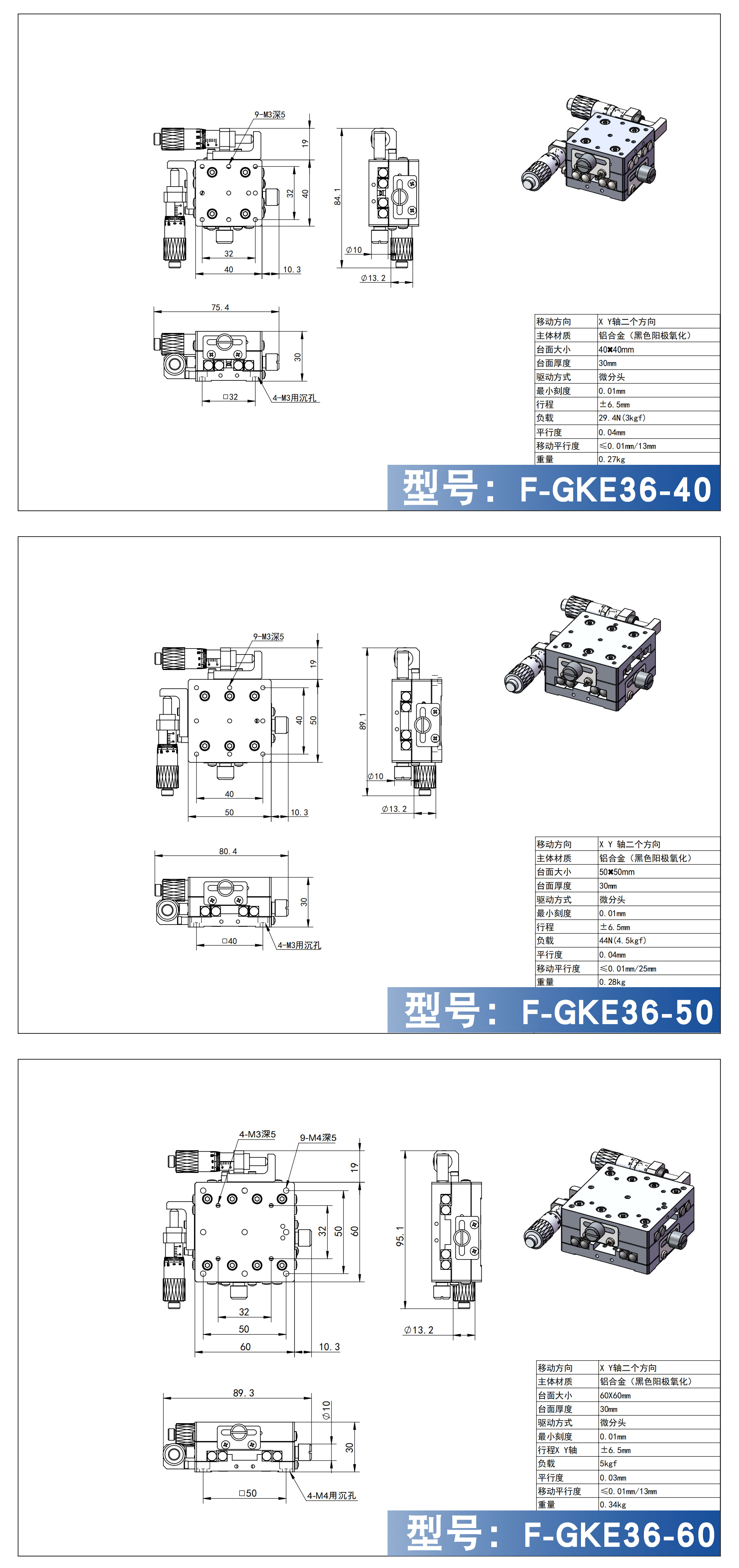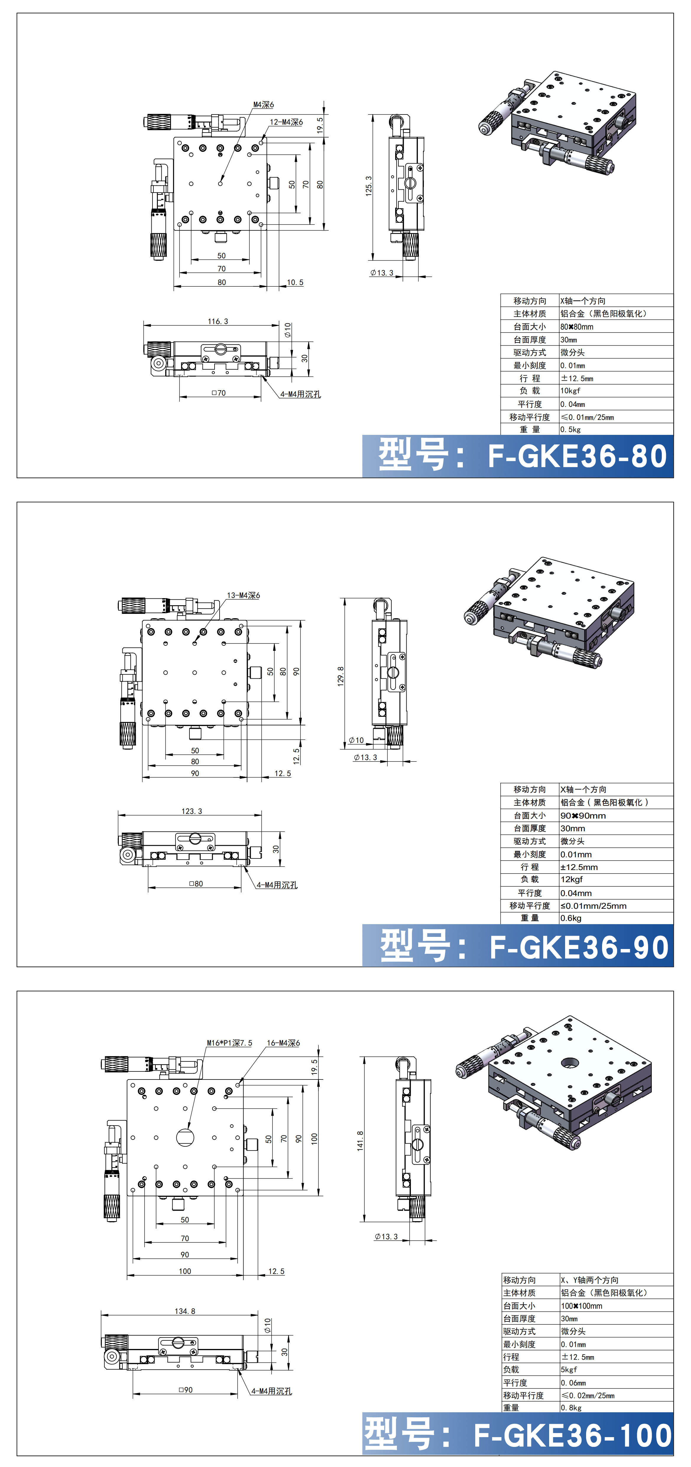 X轴 手动位移台 燕尾槽式 齿轮齿条型 宽度60 长行程
