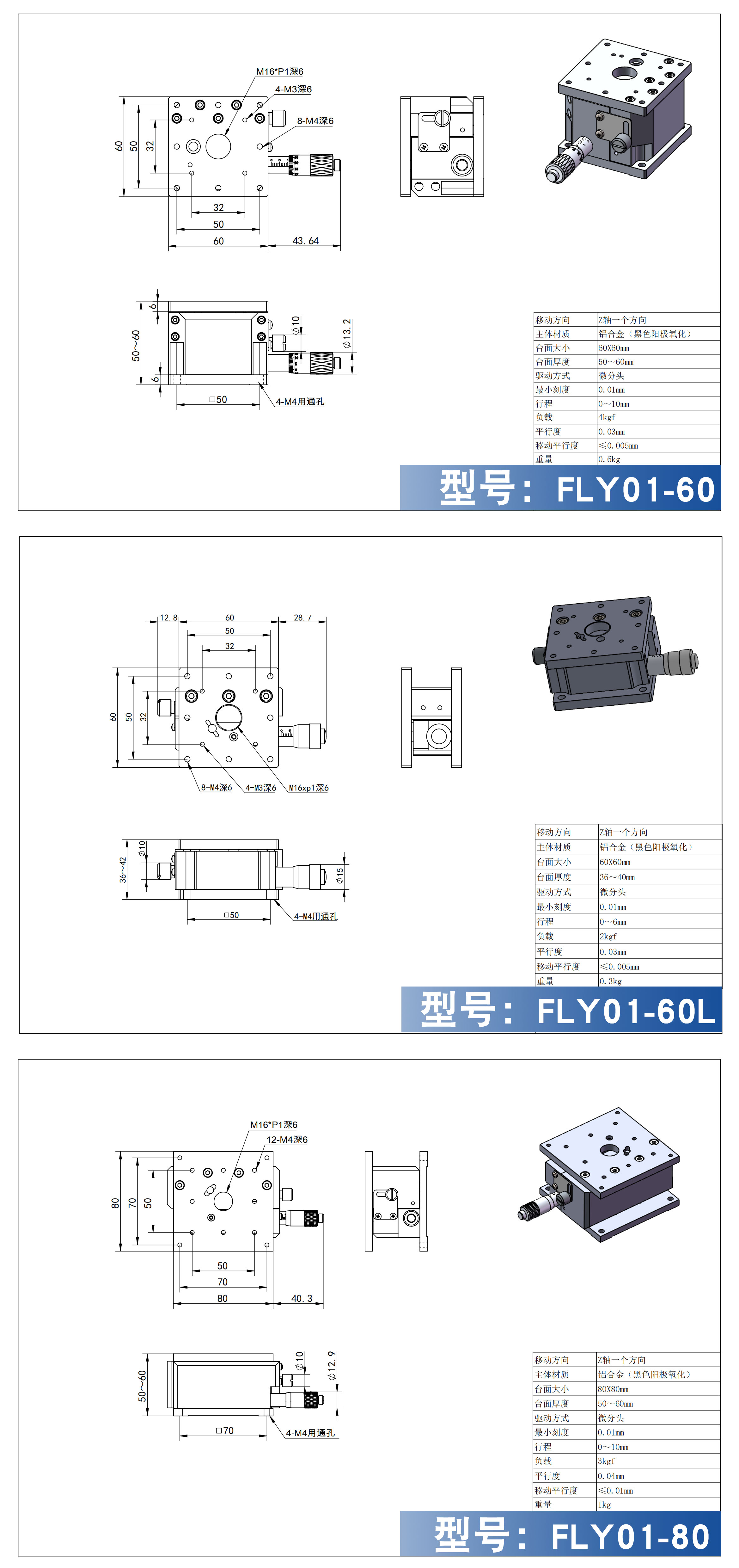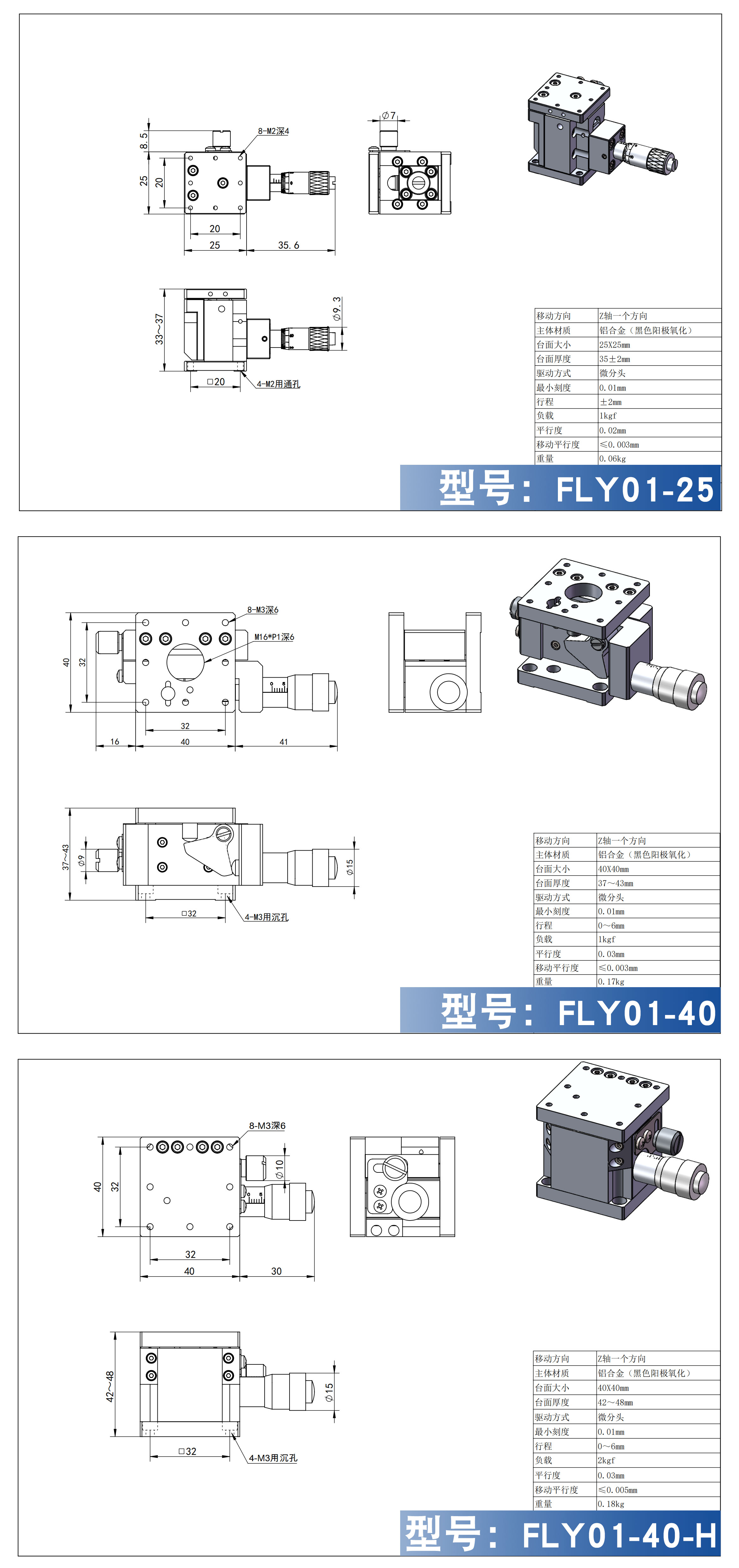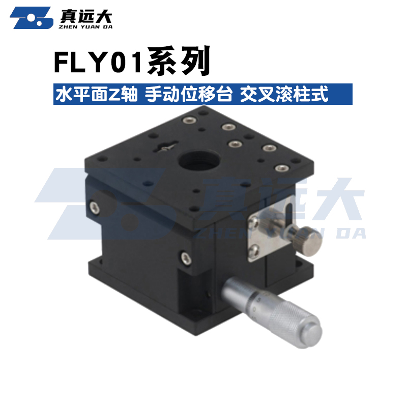 真远大FLY01系列手动滑台是一款手动水平面Z轴交叉滚子导轨型高精度滑台。滑台面可水平方向上下运动,最适合于高精度水平面Z轴微调。可根据实际需求,选择千分尺旋钮型或进给丝杠型进给机构。