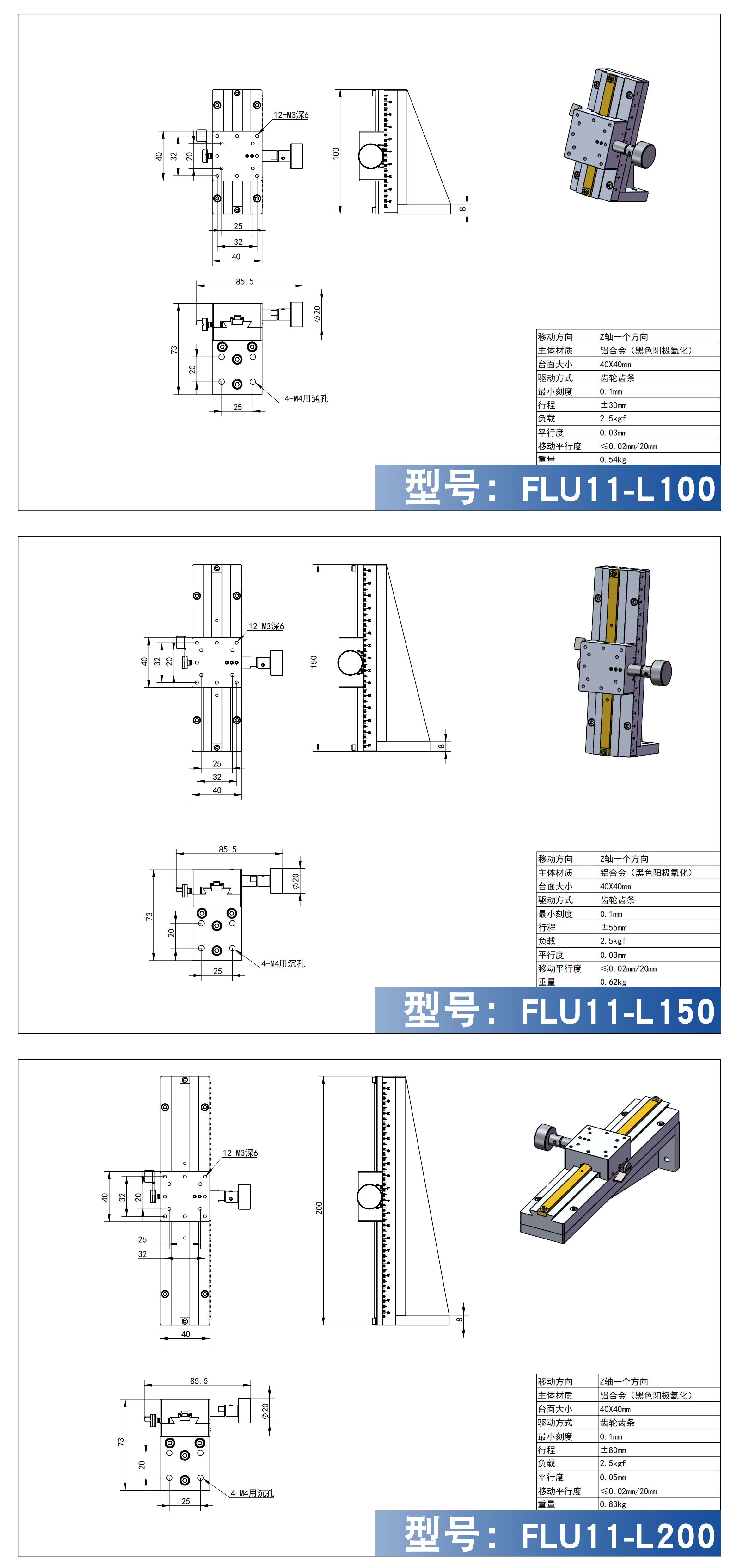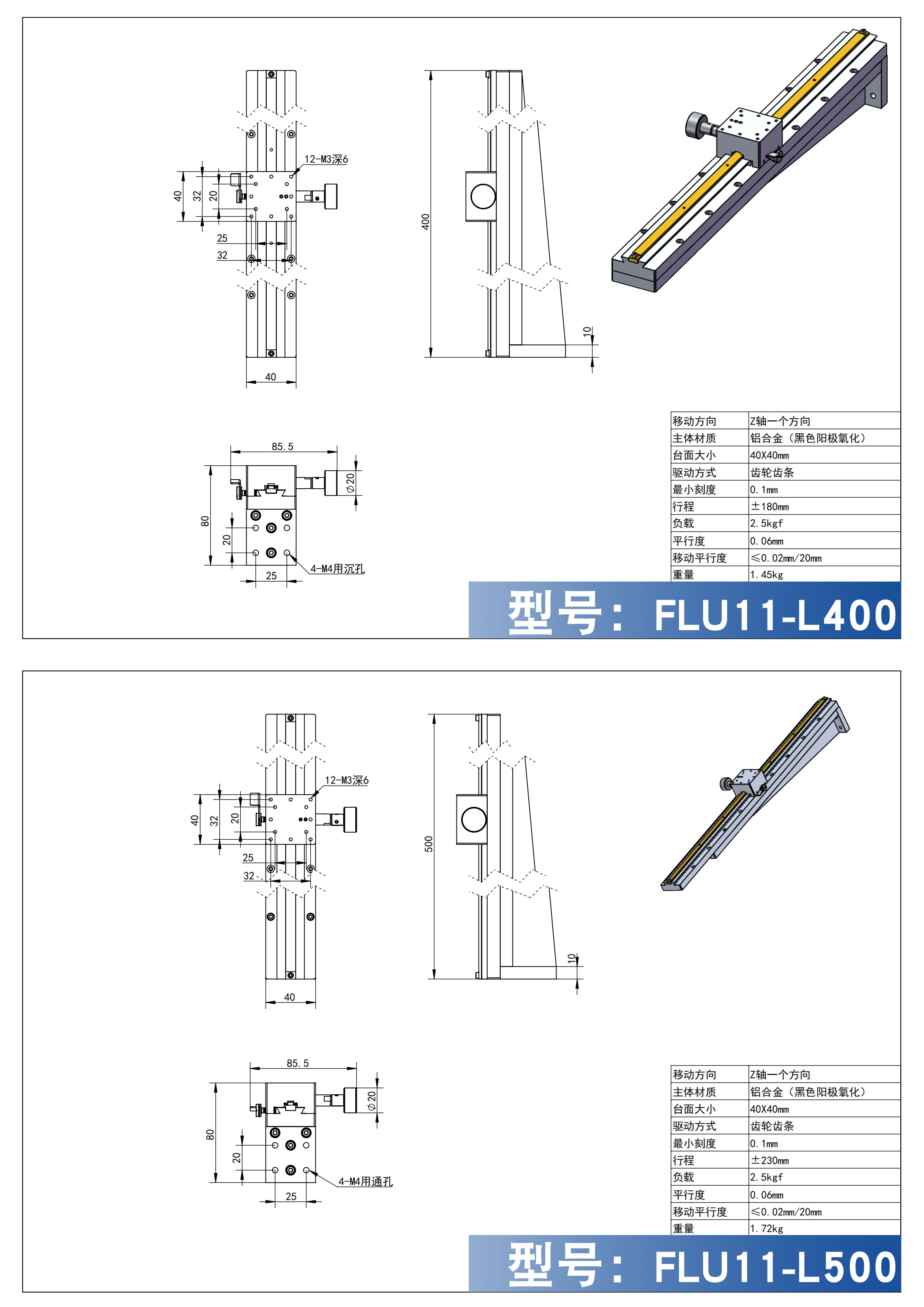 Z轴 手动位移台 燕尾槽式 齿轮齿条型 宽度40 长行程