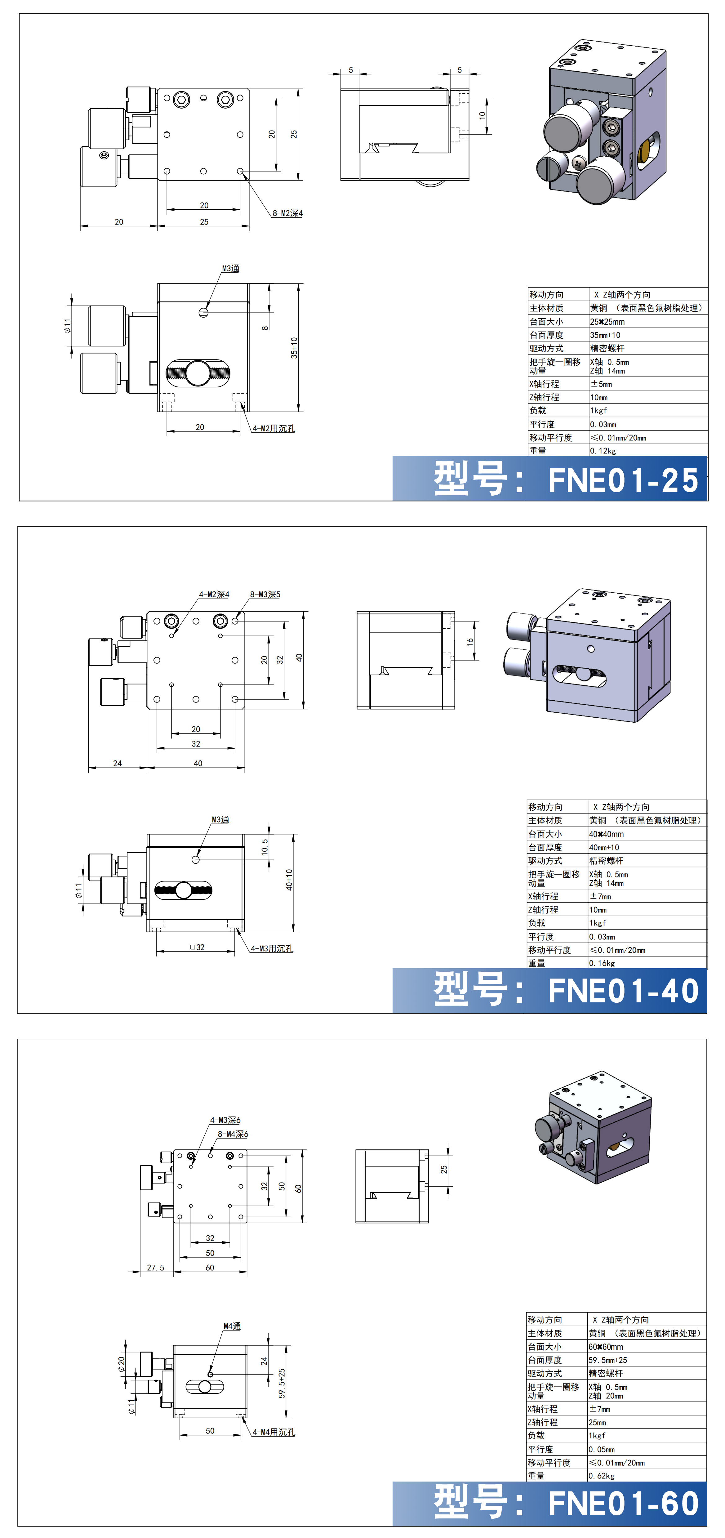XZ轴 手动位移台 燕尾槽式 进给丝杠+齿轮齿条型 铜合金