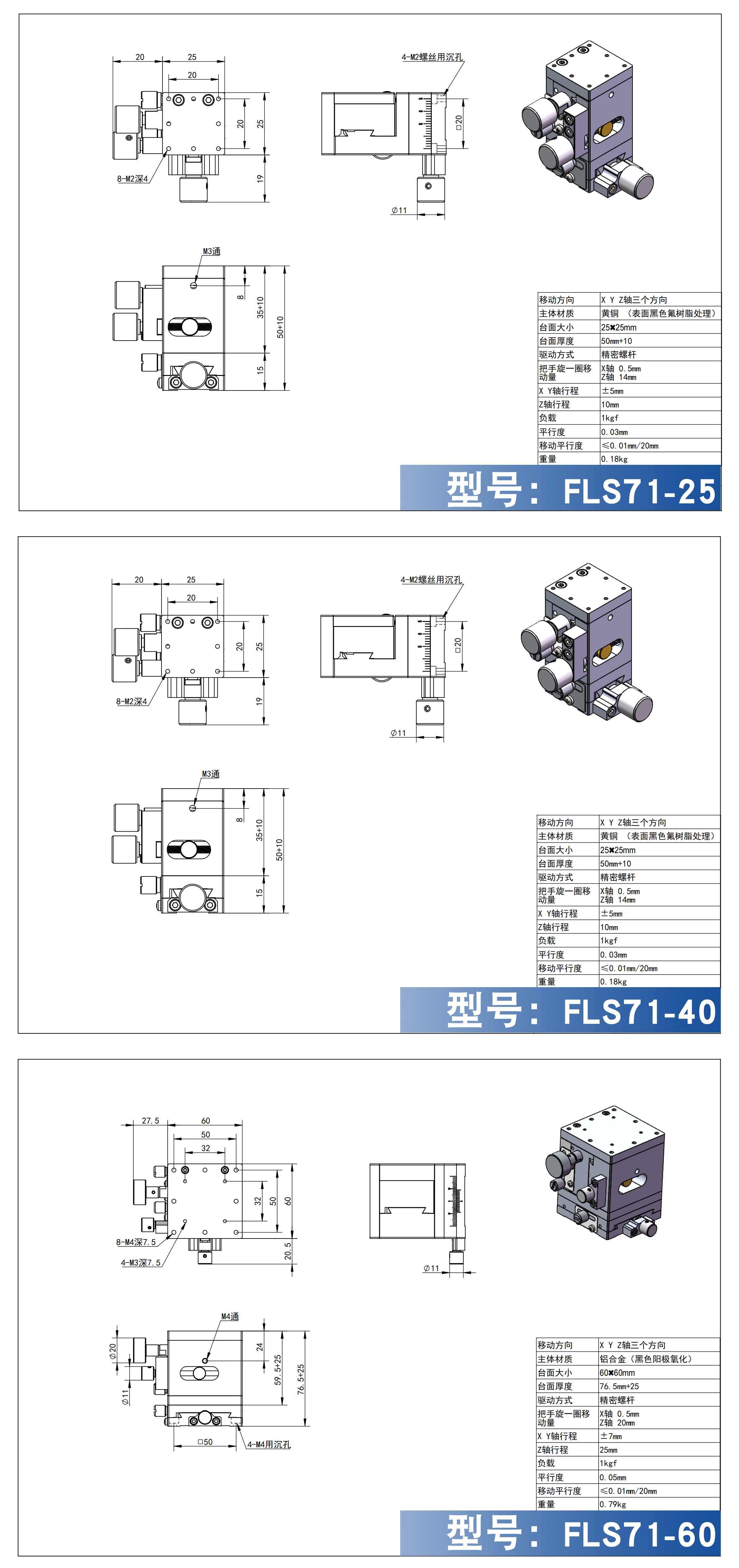 此滑台是一款手动XYZ轴燕尾槽型滑台,其由高精度燕尾槽滑台XEG和高精度手动XZ一体式滑台组成。其中XY轴采用进给丝杠传动,可在水平方向上实现微调;Z轴采用齿条齿轮传动,可在高度方向上实现快速进给。由于其采用了一体式构造的XZ轴滑台,使其空间更加紧凑。