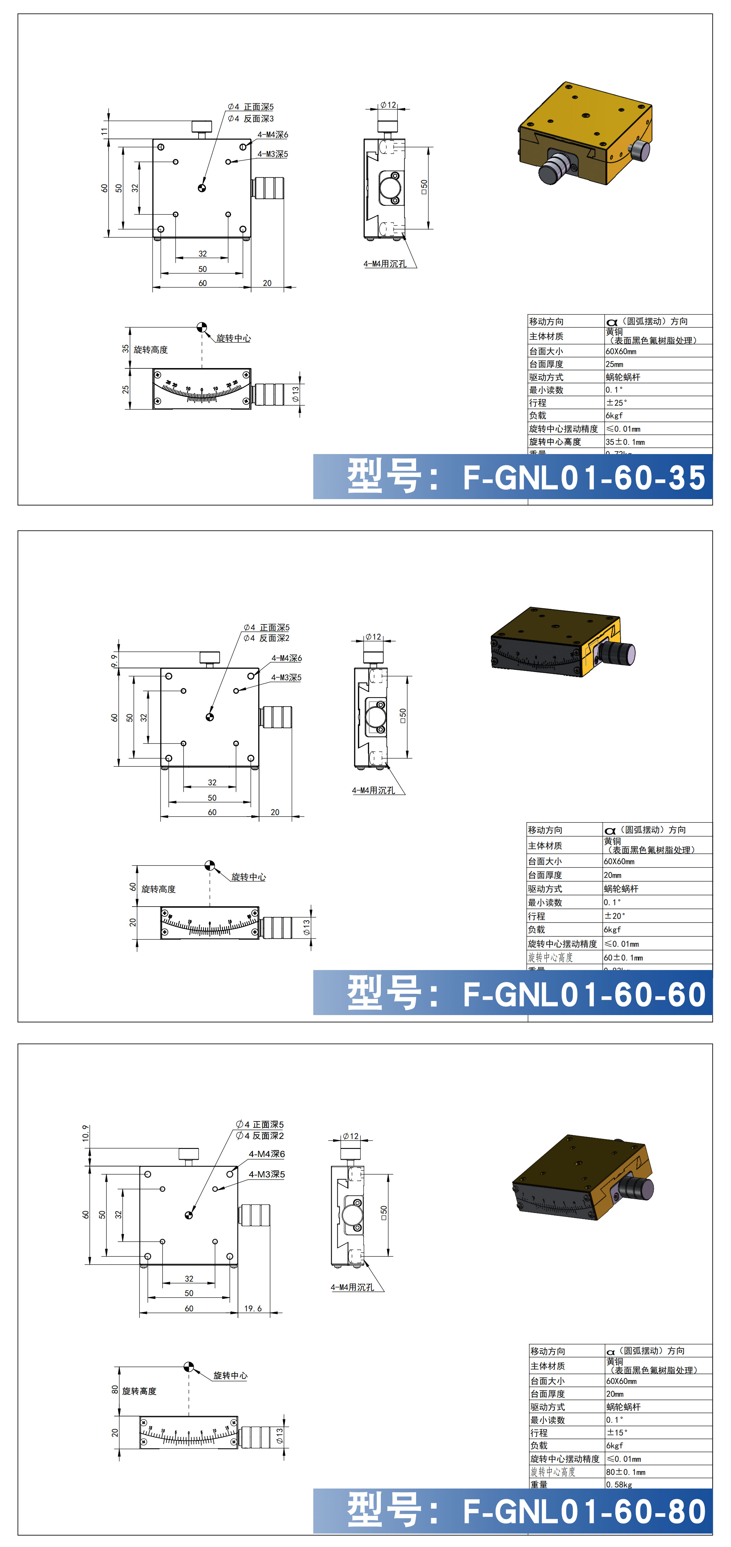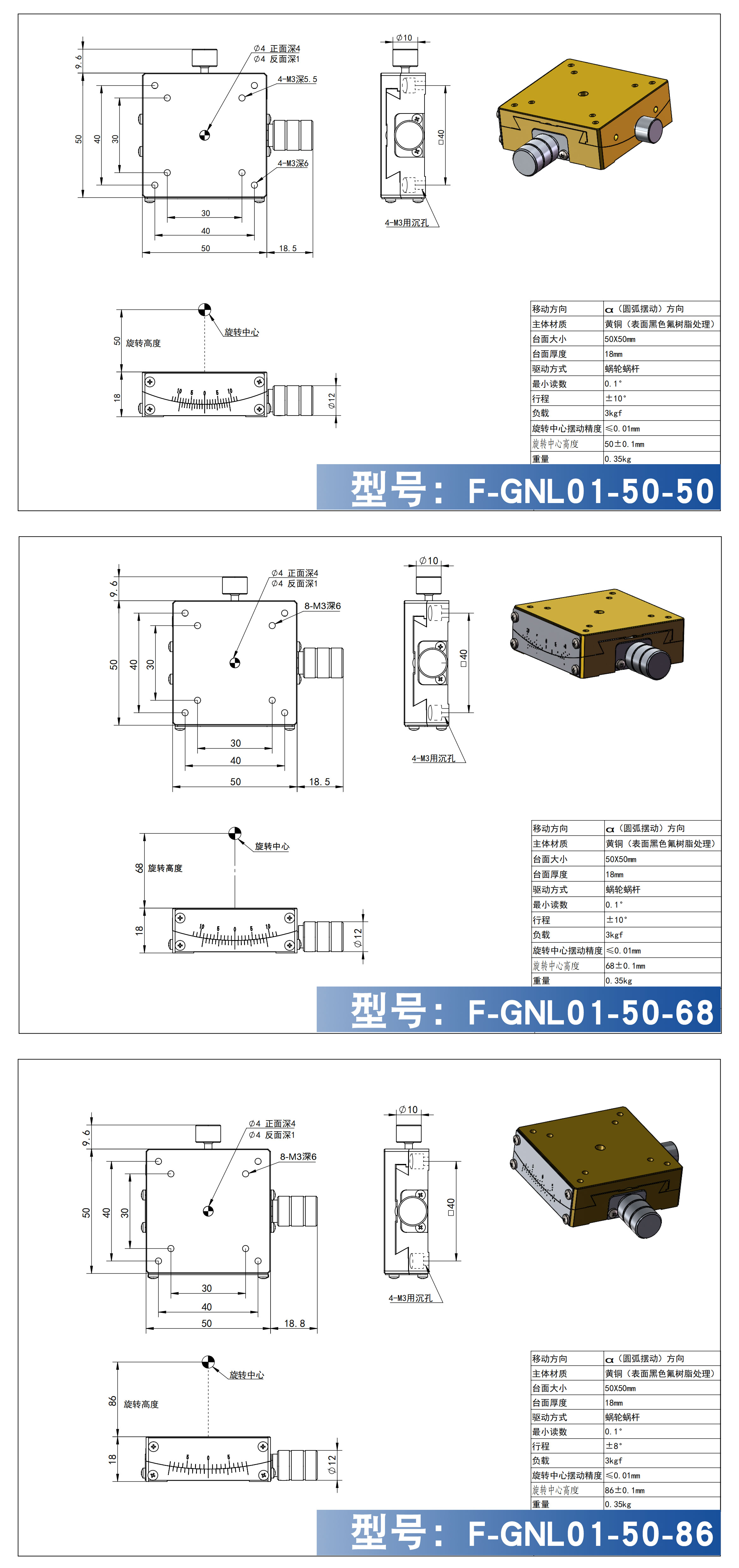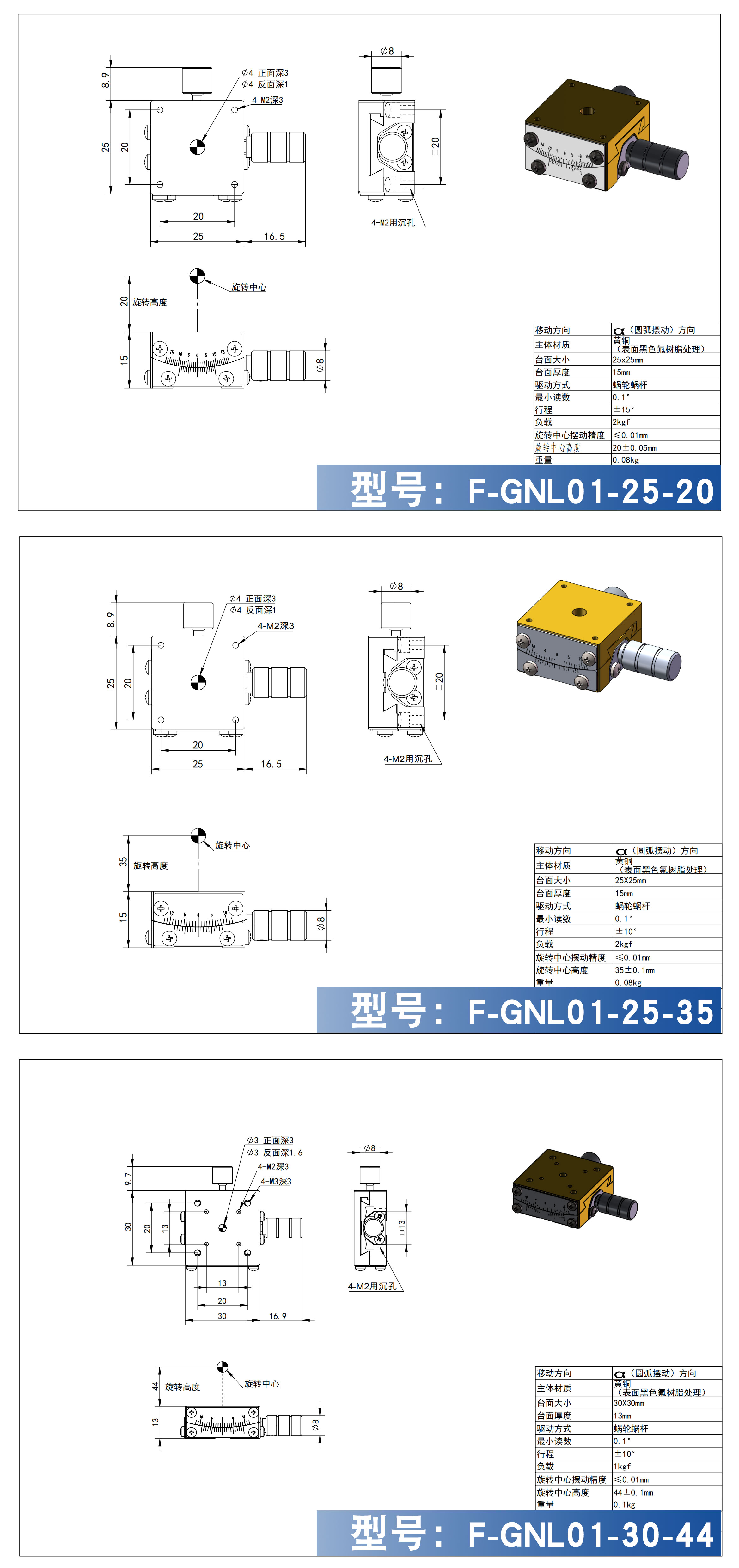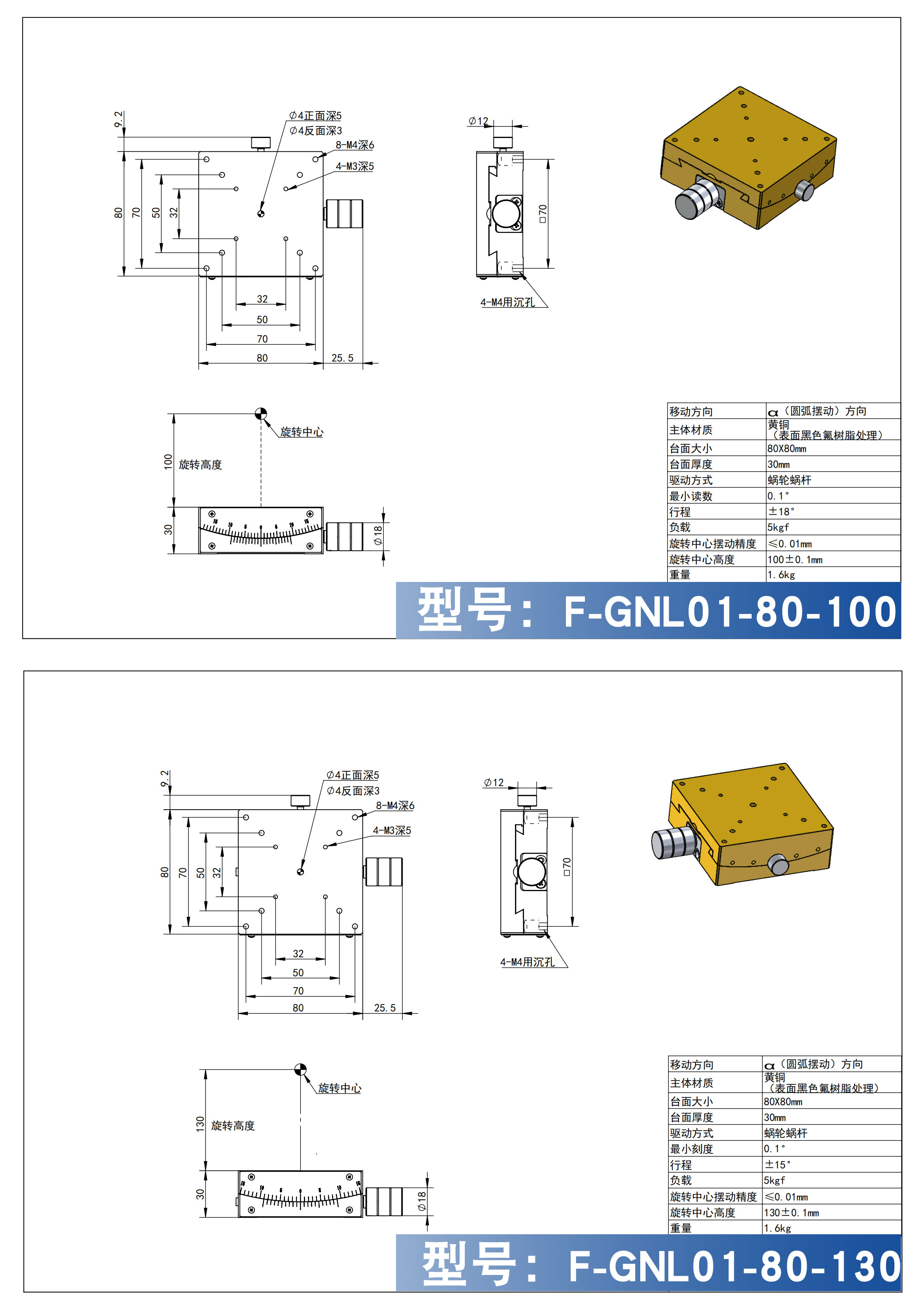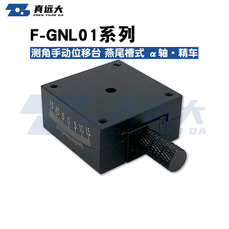 真远大手动测角仪,又叫摆动滑台,是继直线运动滑台、旋转滑台之后的第三类滑台。旋转中心位于滑台面中央垂直线上,作圆弧运动的滑台。此款F-GNL01系列手动测角仪是燕尾槽蜗轮蜗杆型滑台,可进行平面角度的调节,最适用于大角度的调整。