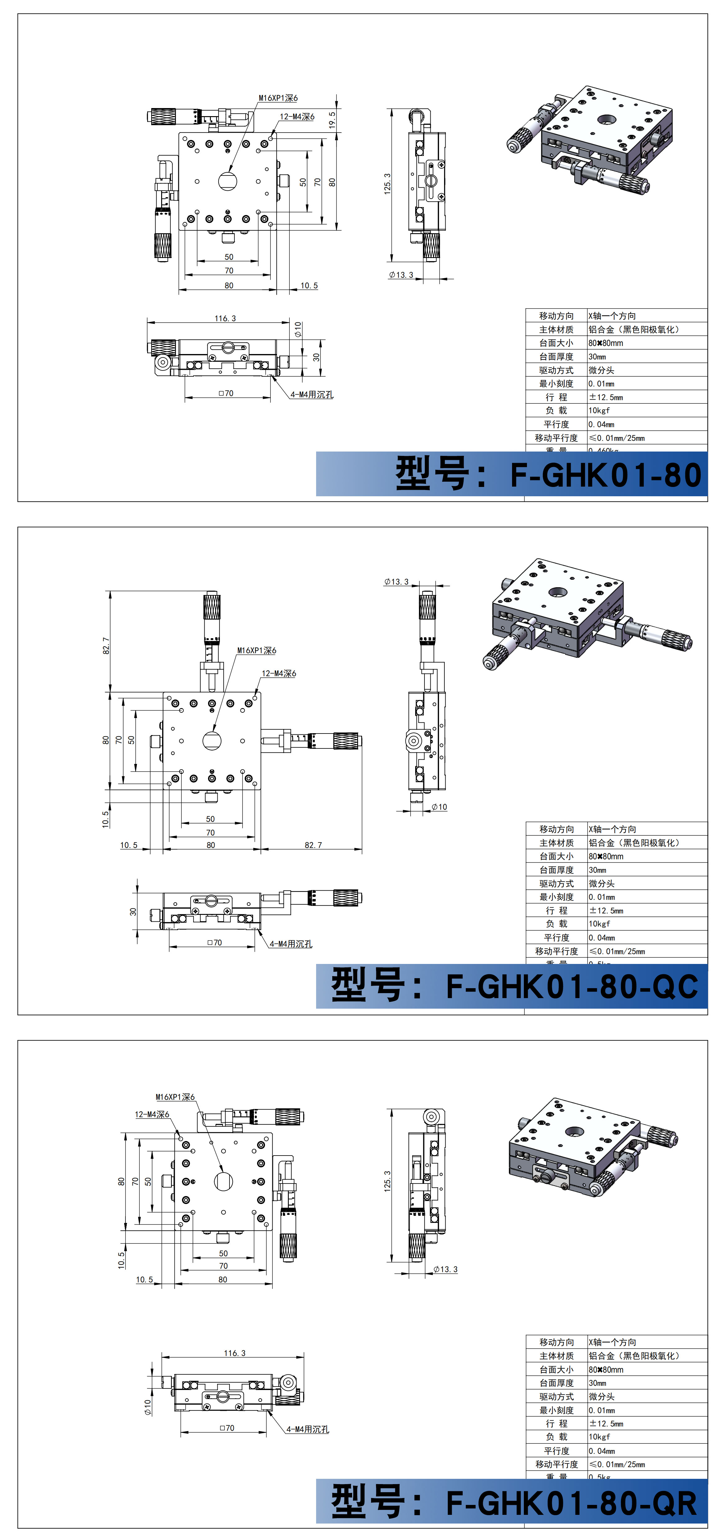 XY轴 手动位移台 燕尾槽式 齿轮齿条型·薄型