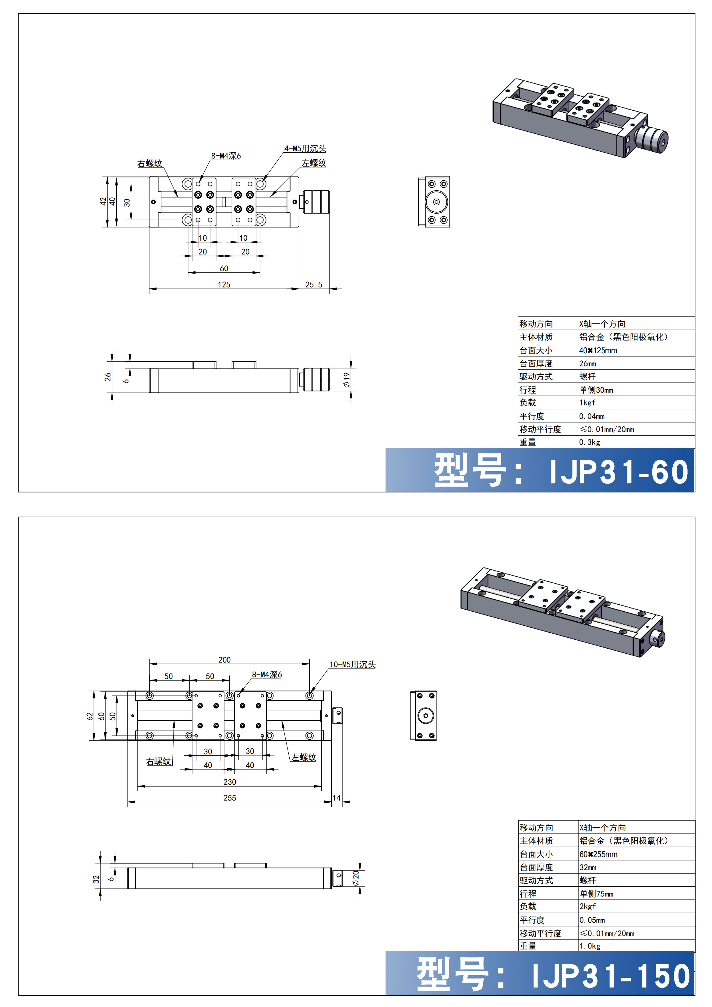 简易调整组件 X轴 单导轨梯形丝杠型 重载型 带防尘盖板 带/不带数显