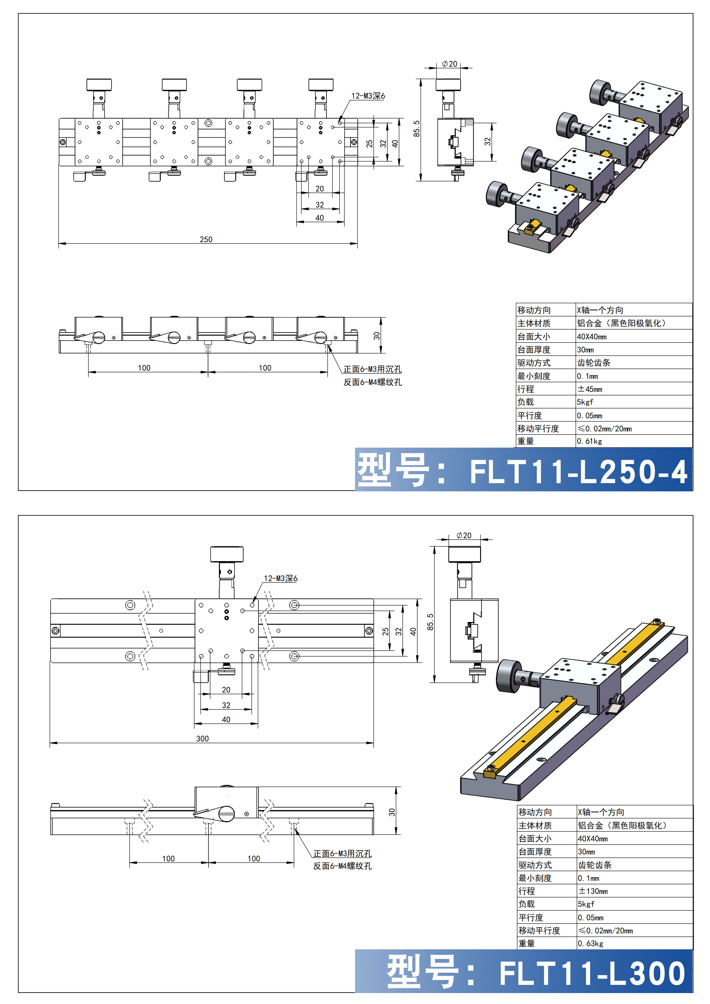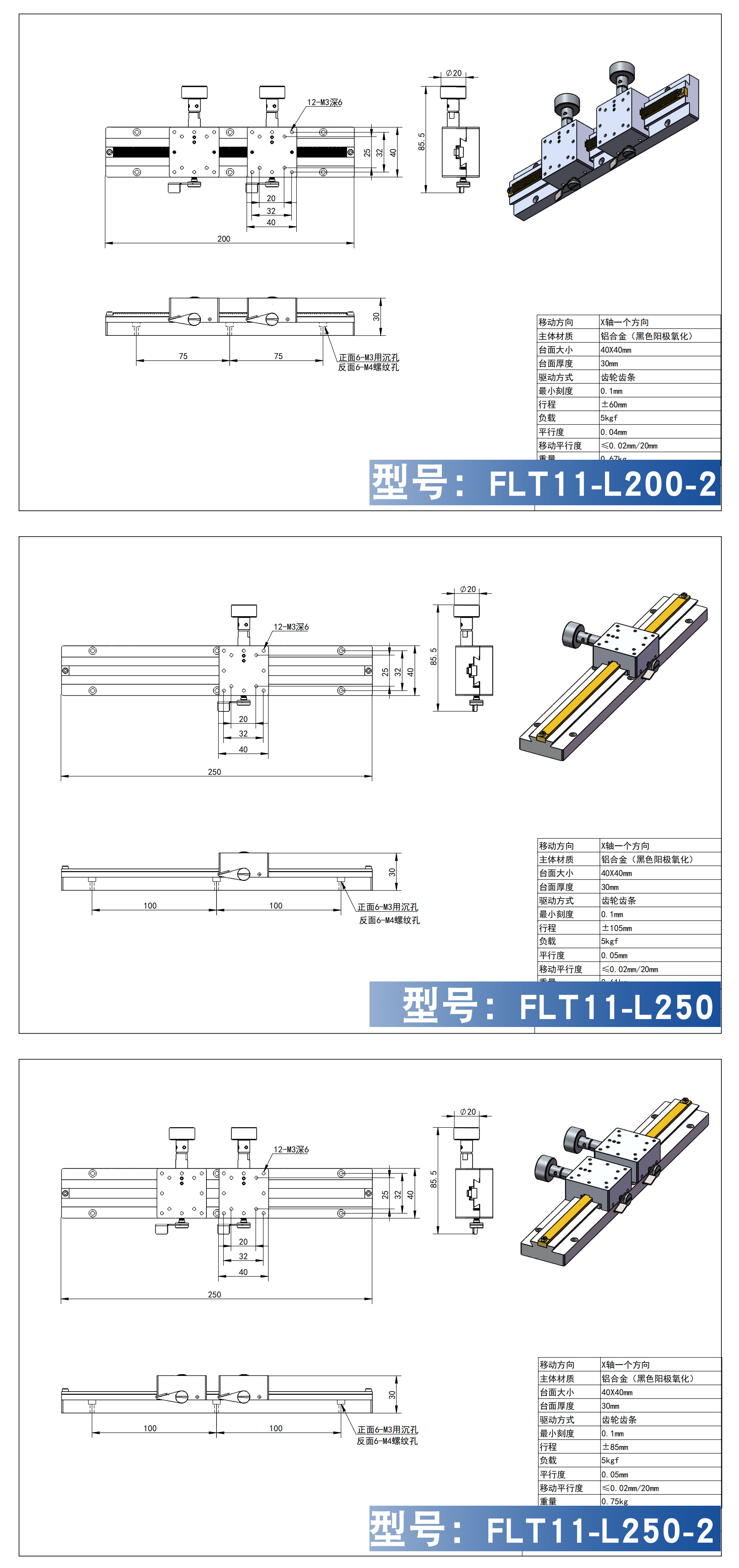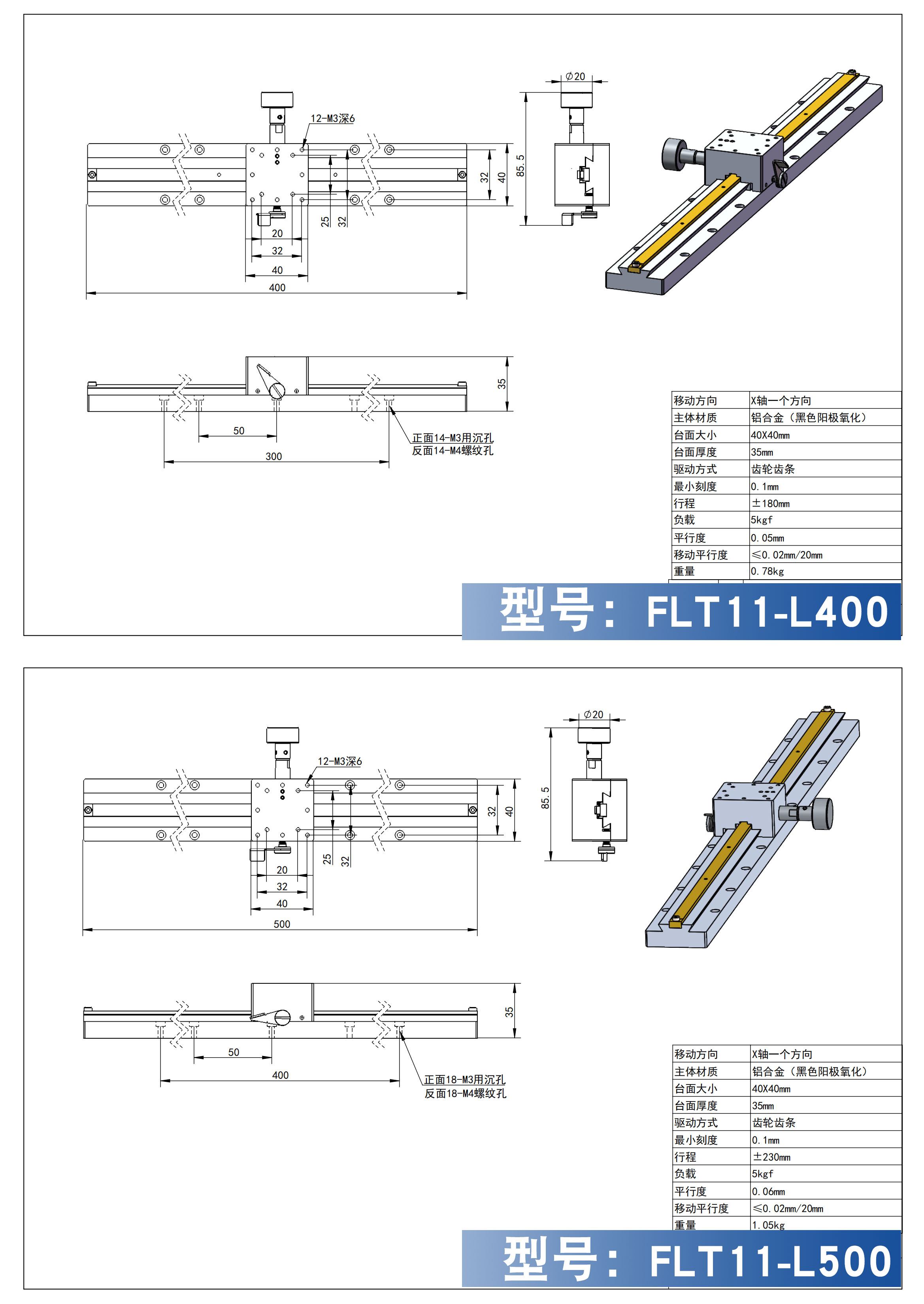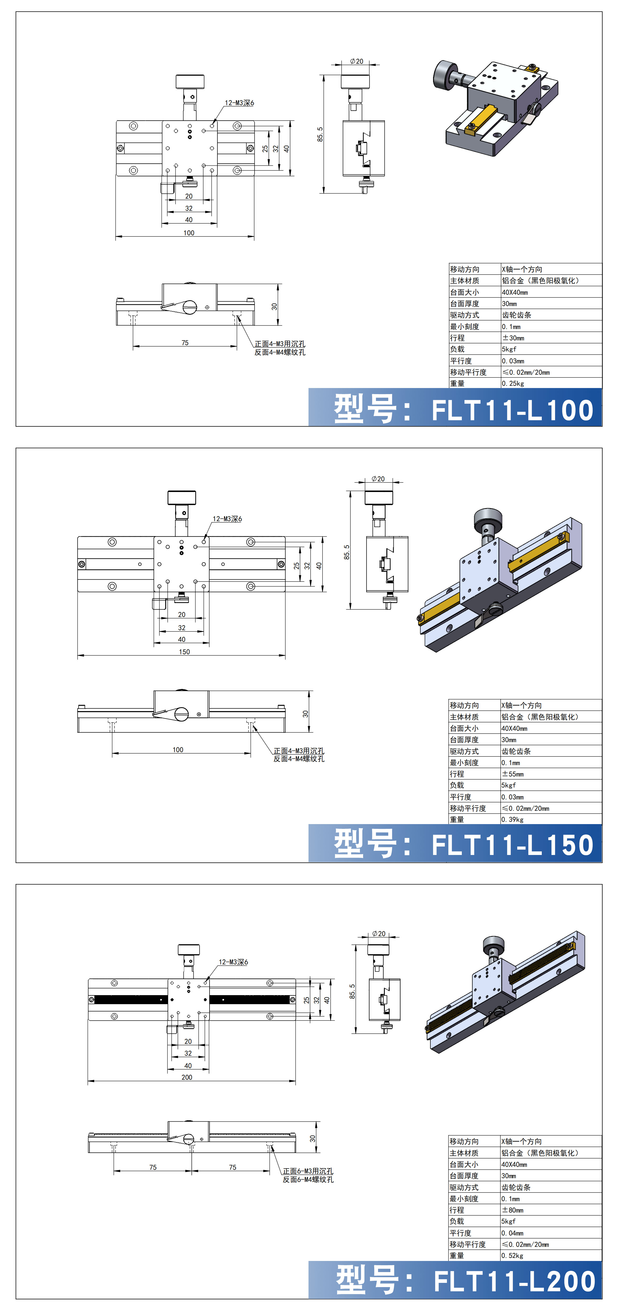X轴 手动位移台 燕尾槽式 齿轮齿条型 宽度40 长行程