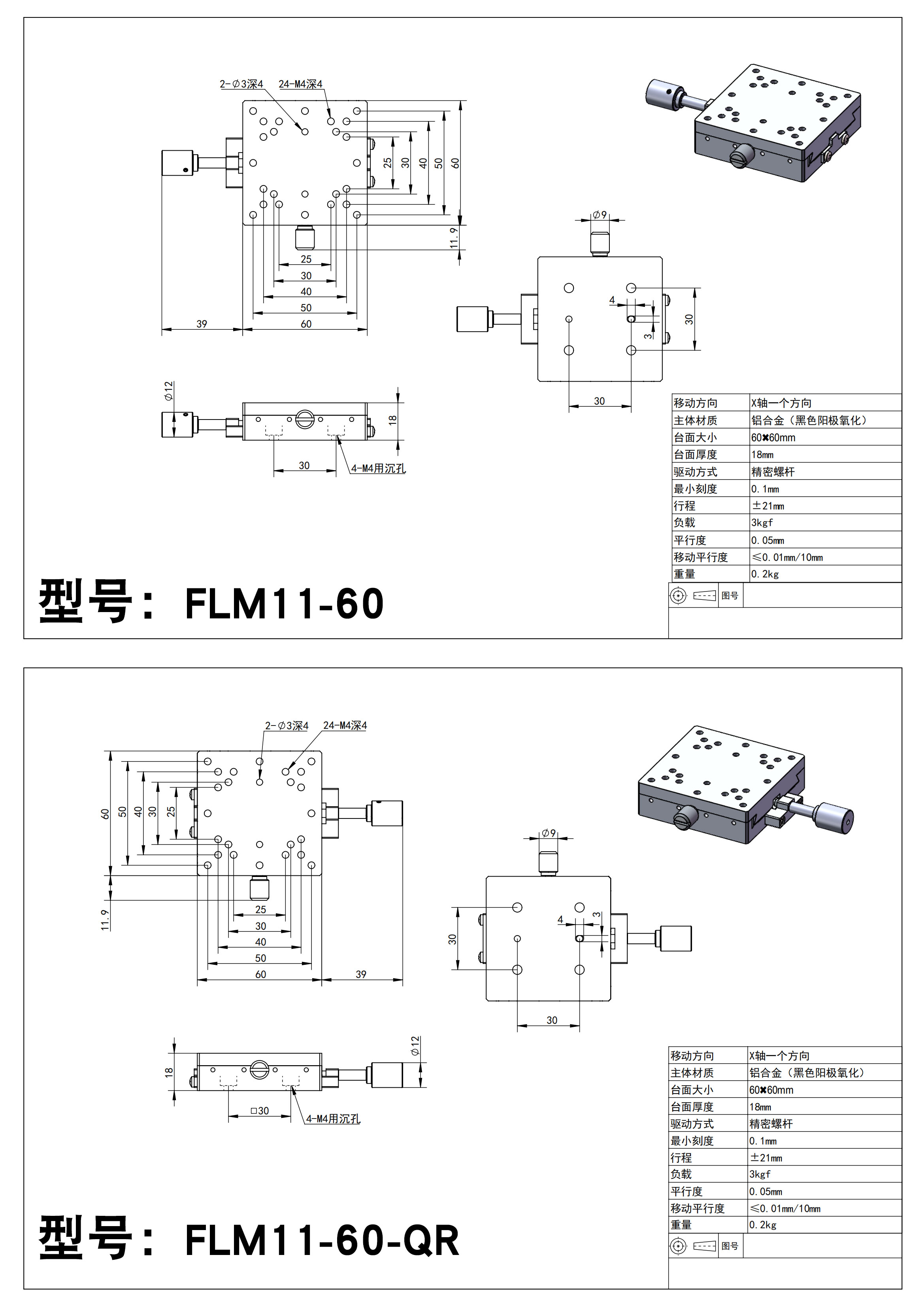 FLM11系列手动X轴燕尾槽进给丝杠式滑台是一款高精度滑台,进给顺畅。