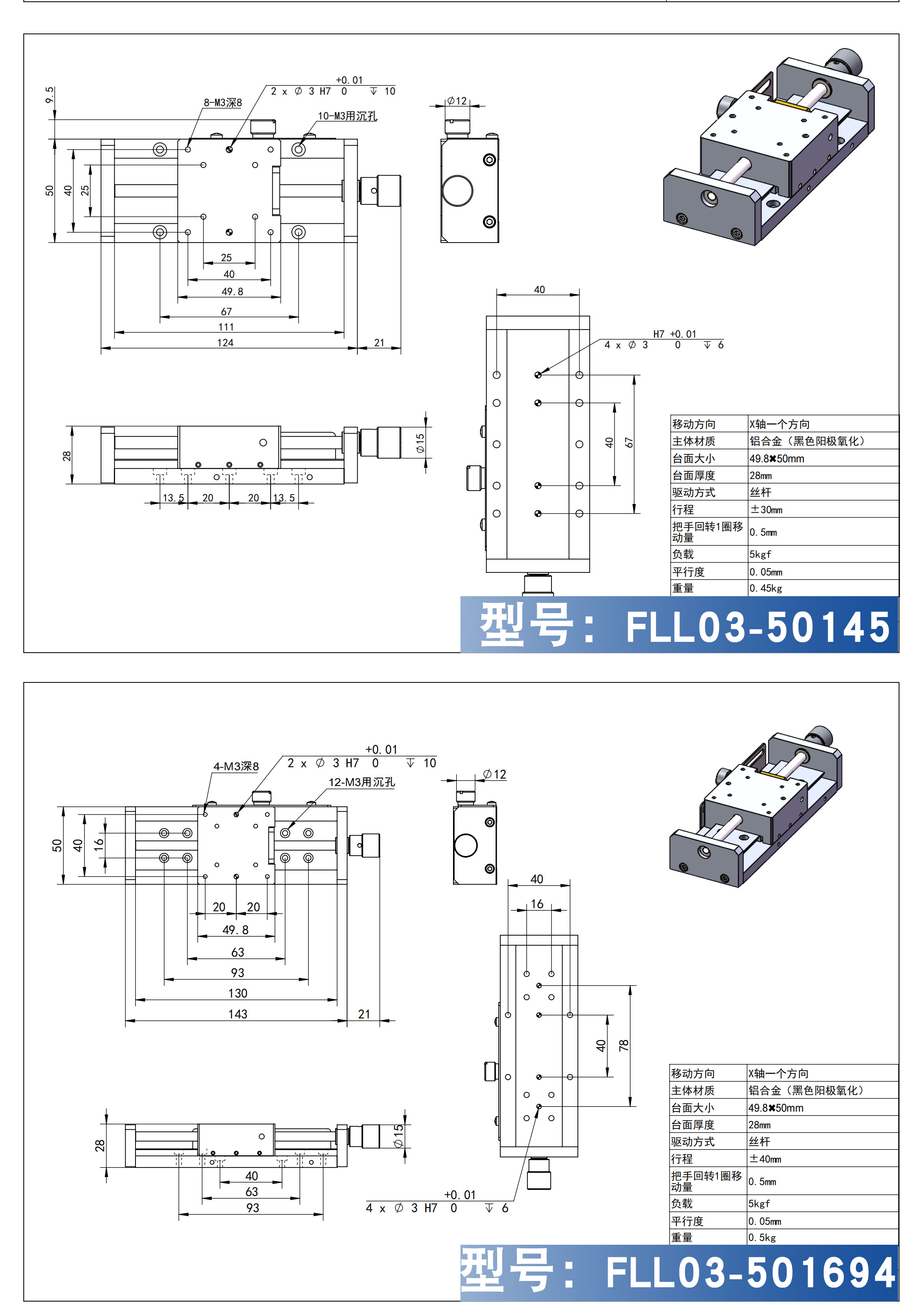 X轴手动位移滑台 燕尾槽式 进给丝杠型