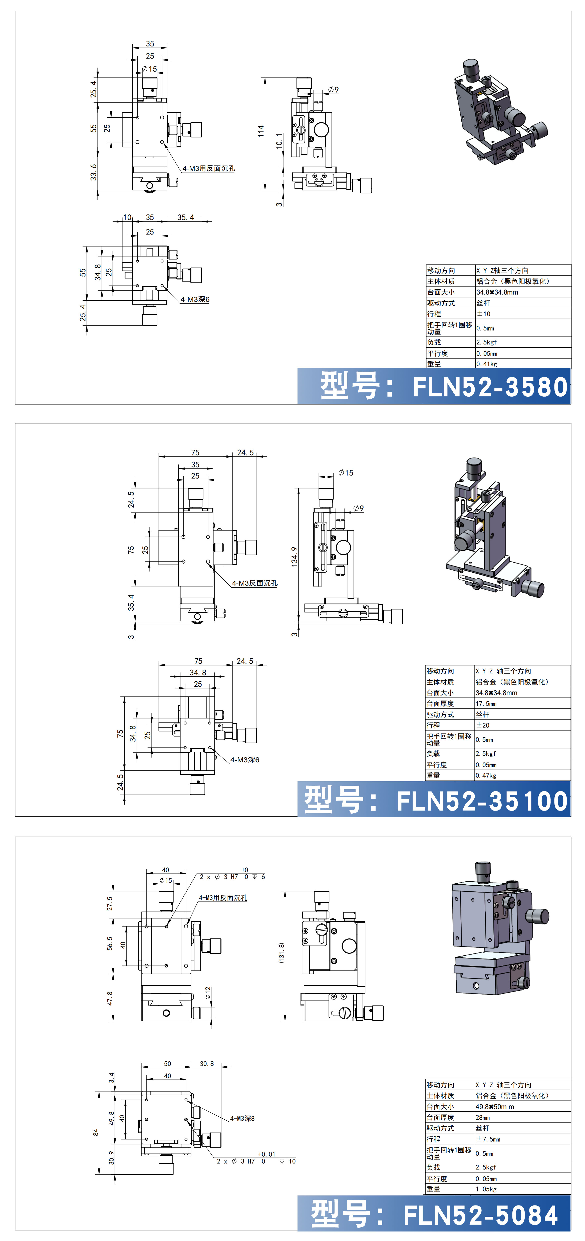 XYZ轴手动位移滑台 燕尾槽式 进给丝杠型