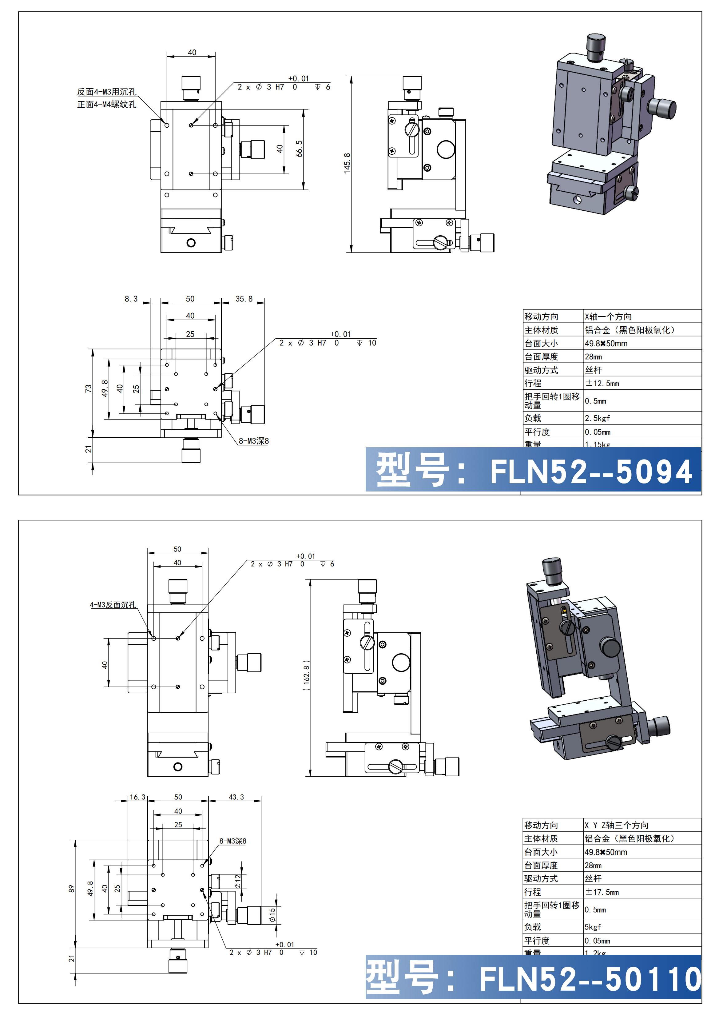 XZ轴 手动位移台 燕尾槽式 进给丝杠+齿轮齿条型 铜合金