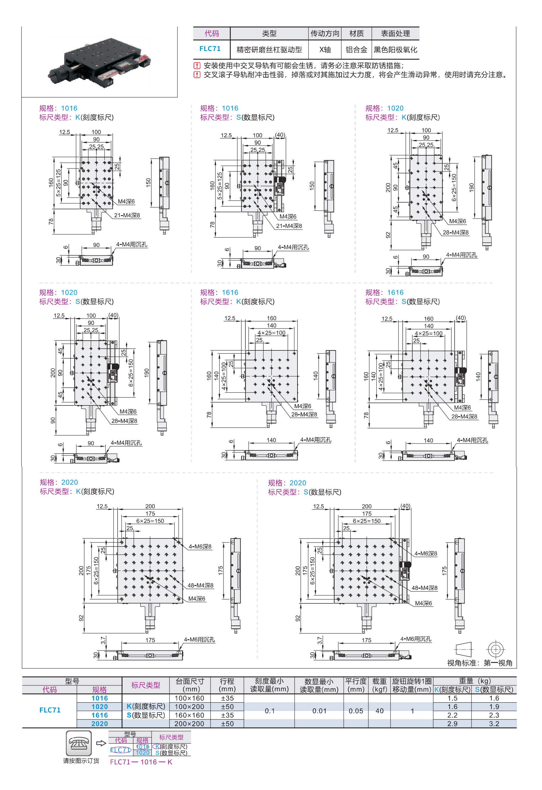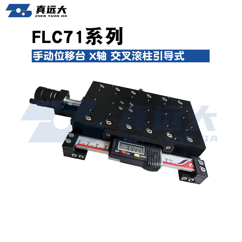 真远大FLC71系列交叉滚柱引导式手动X轴滑台精密研磨丝杠驱动式 精密型 铝合金材质 黑色阳极氧化处理